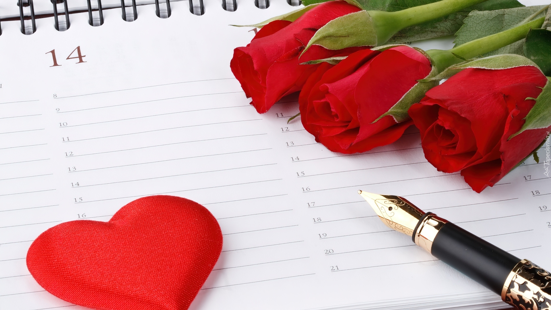 Edytor tapety: Róże, Kalendarz, Serduszko, Pióro