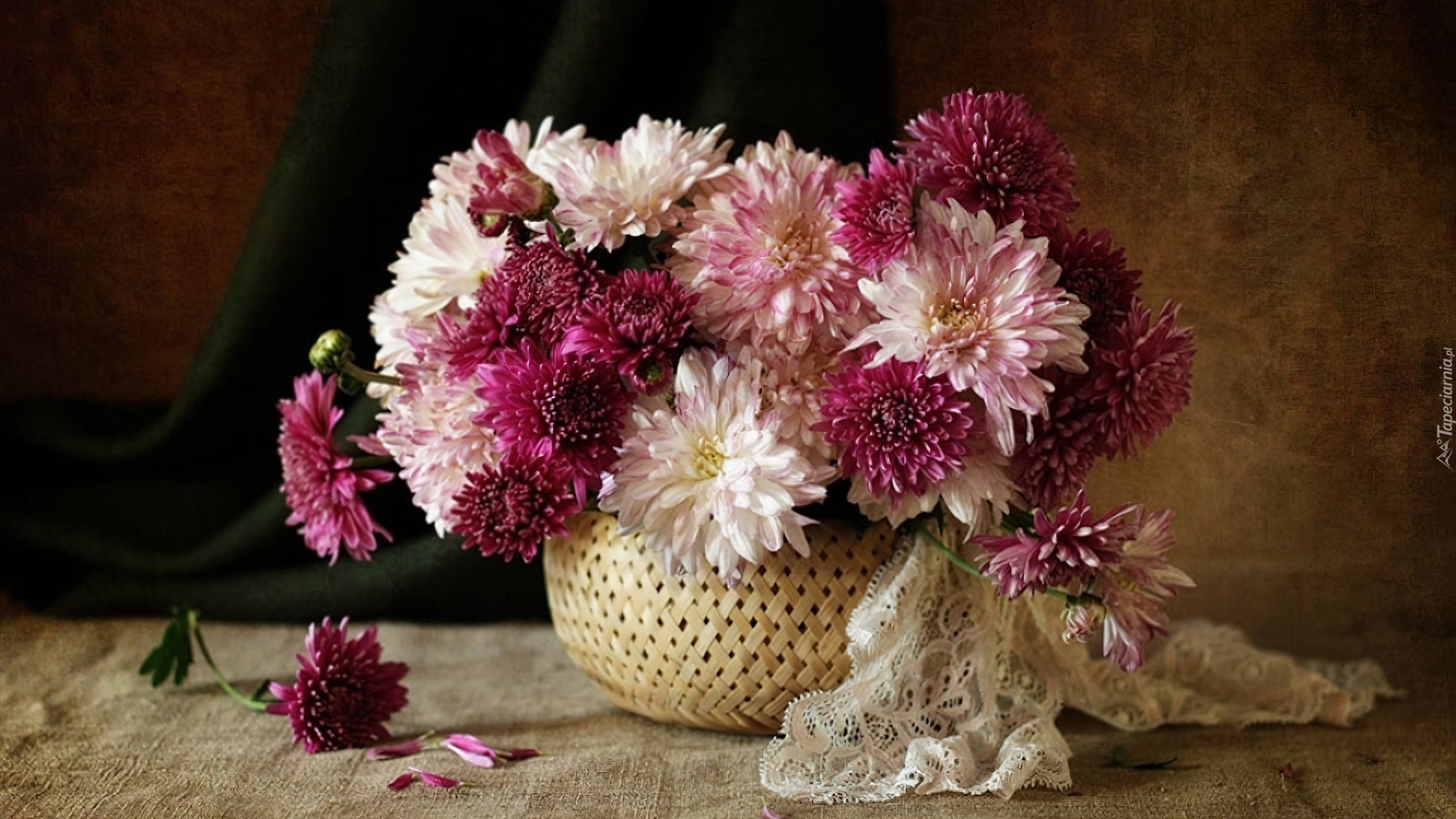 Edytor tapety: Kosz, Bukiet, Chryzantem, Szal