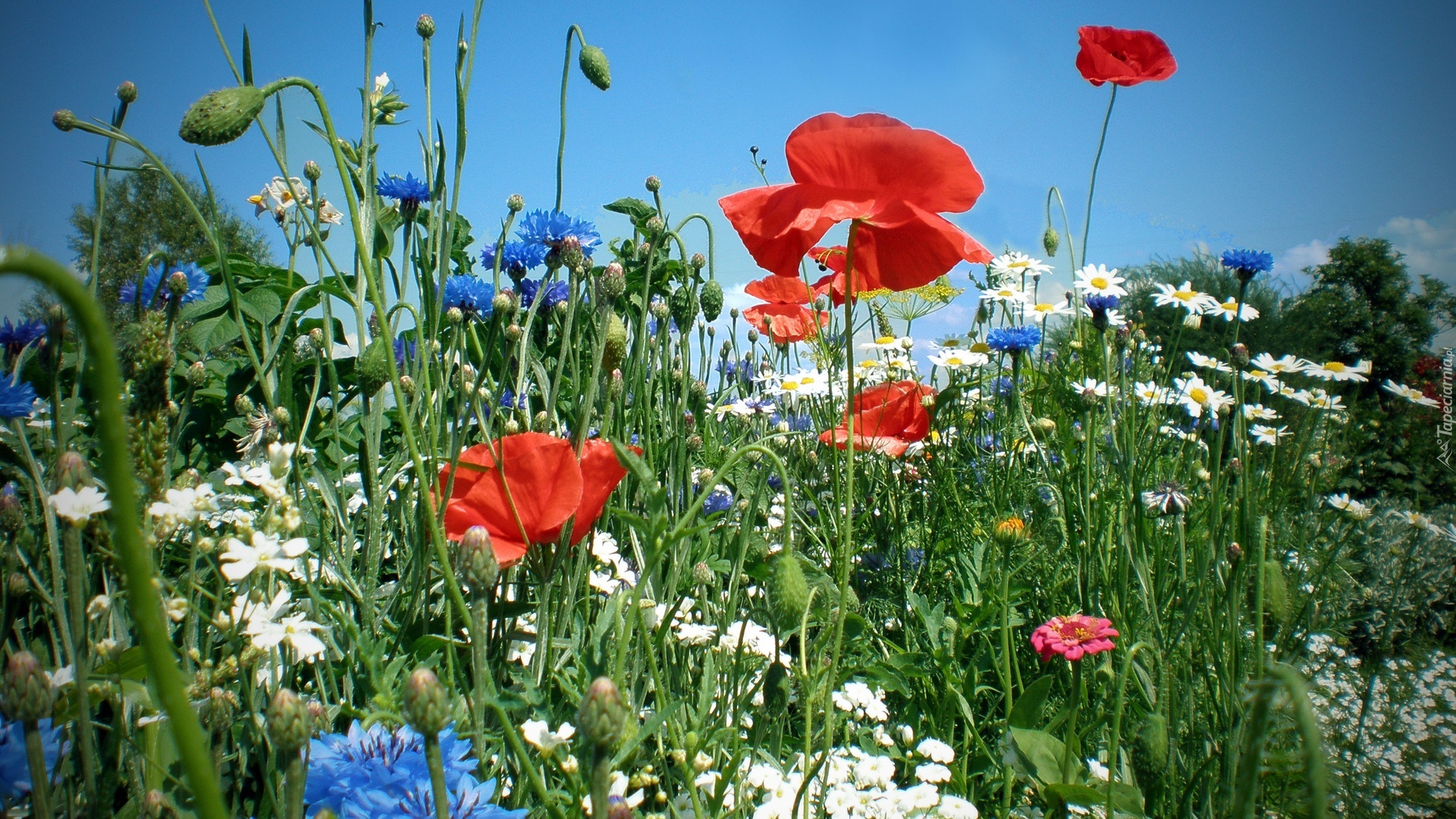 Edytor tapety: Łąka, Mak, Margaretki