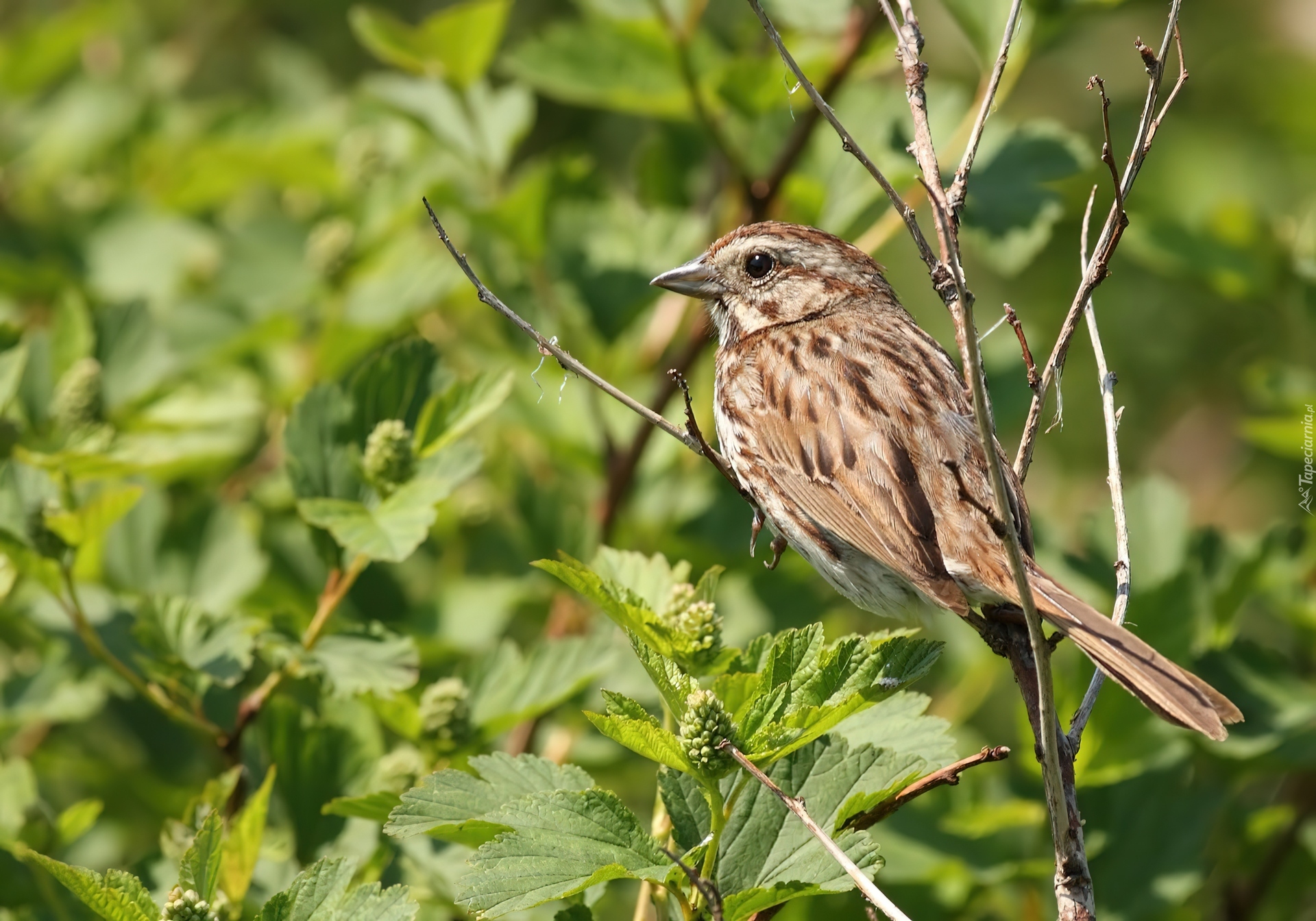 Edytor tapety: Ptaszek, Gałązki, Liście
