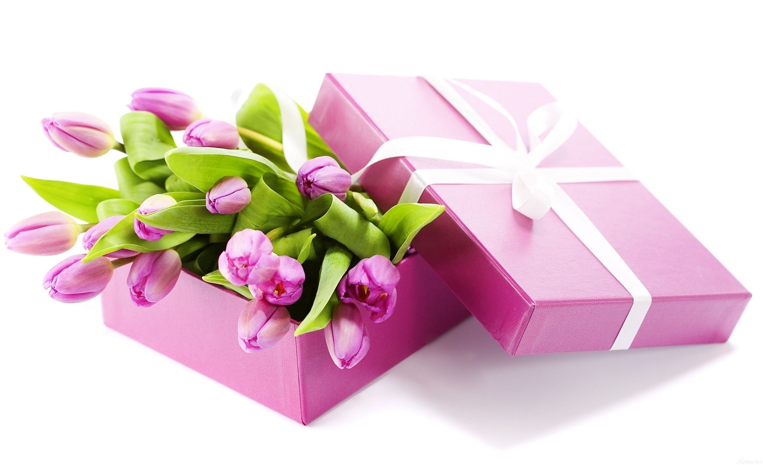 Edytor tapety: Fioletowe, Pudełko, Tulipany