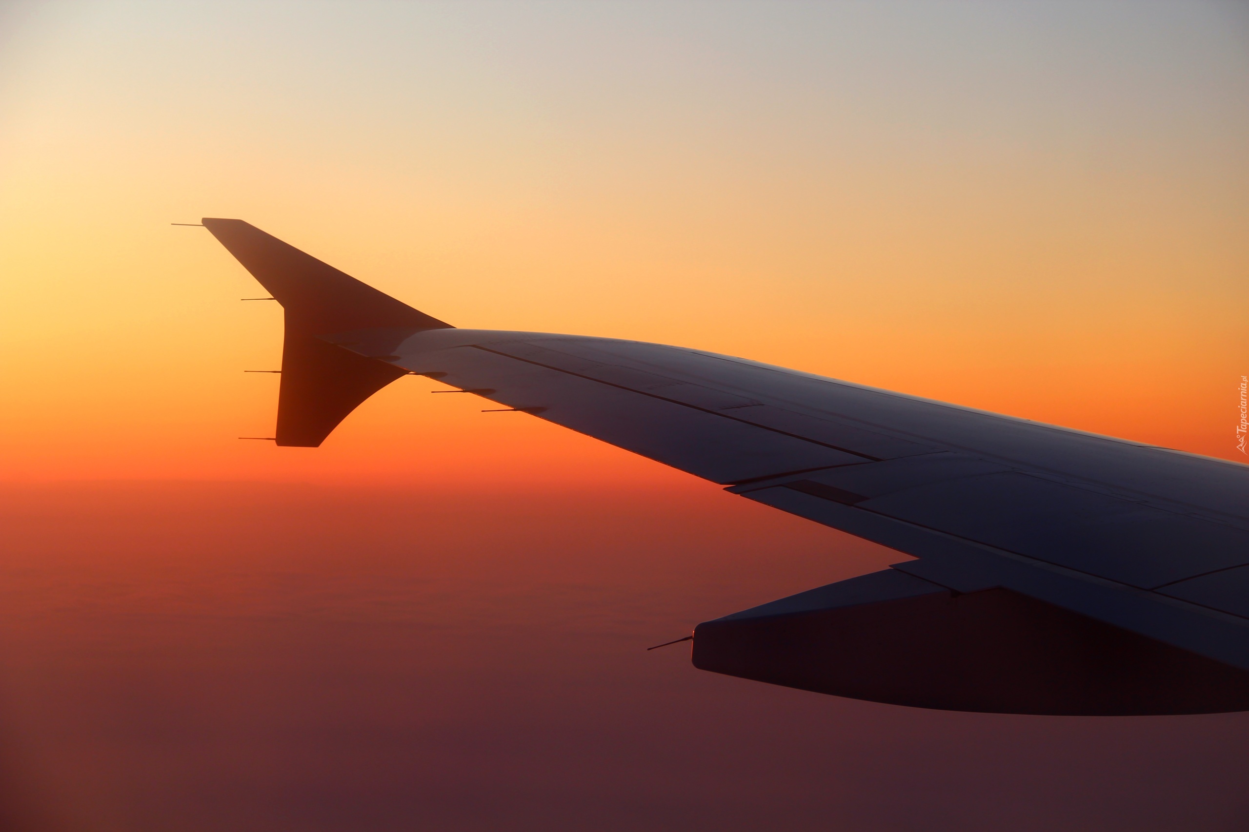 Edytor tapety: Skrzydło, Samolot, Zachód, Słońca