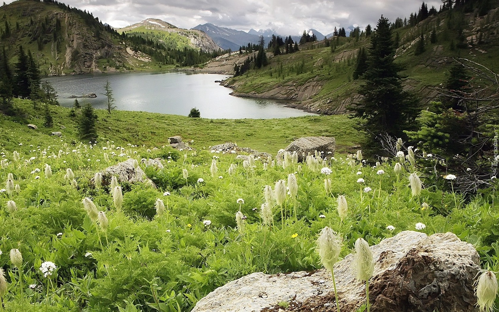 Edytor tapety: Góry, Łąka, Jezioro
