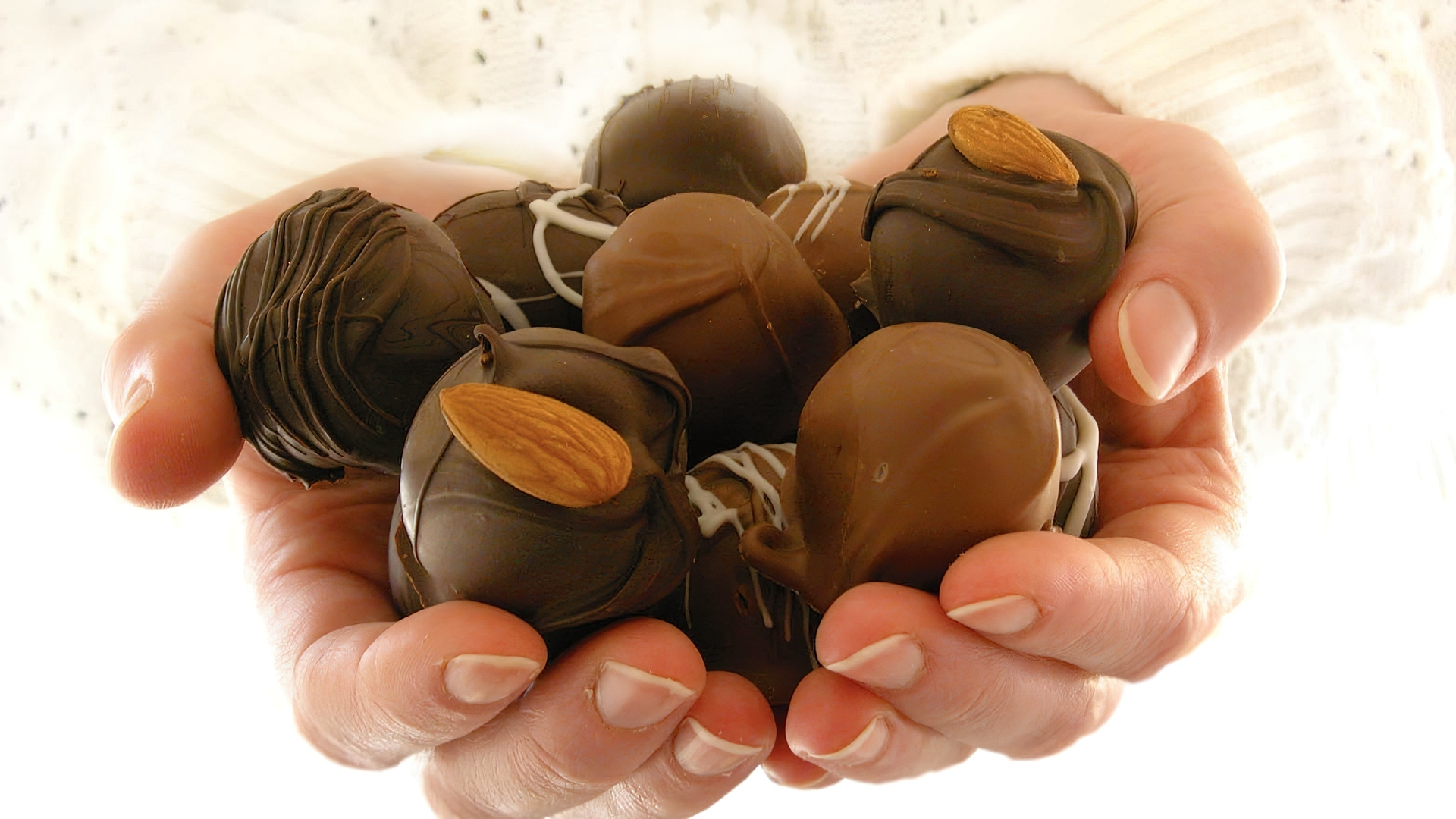 Edytor tapety: Czekoladki, Migdały, Dłonie
