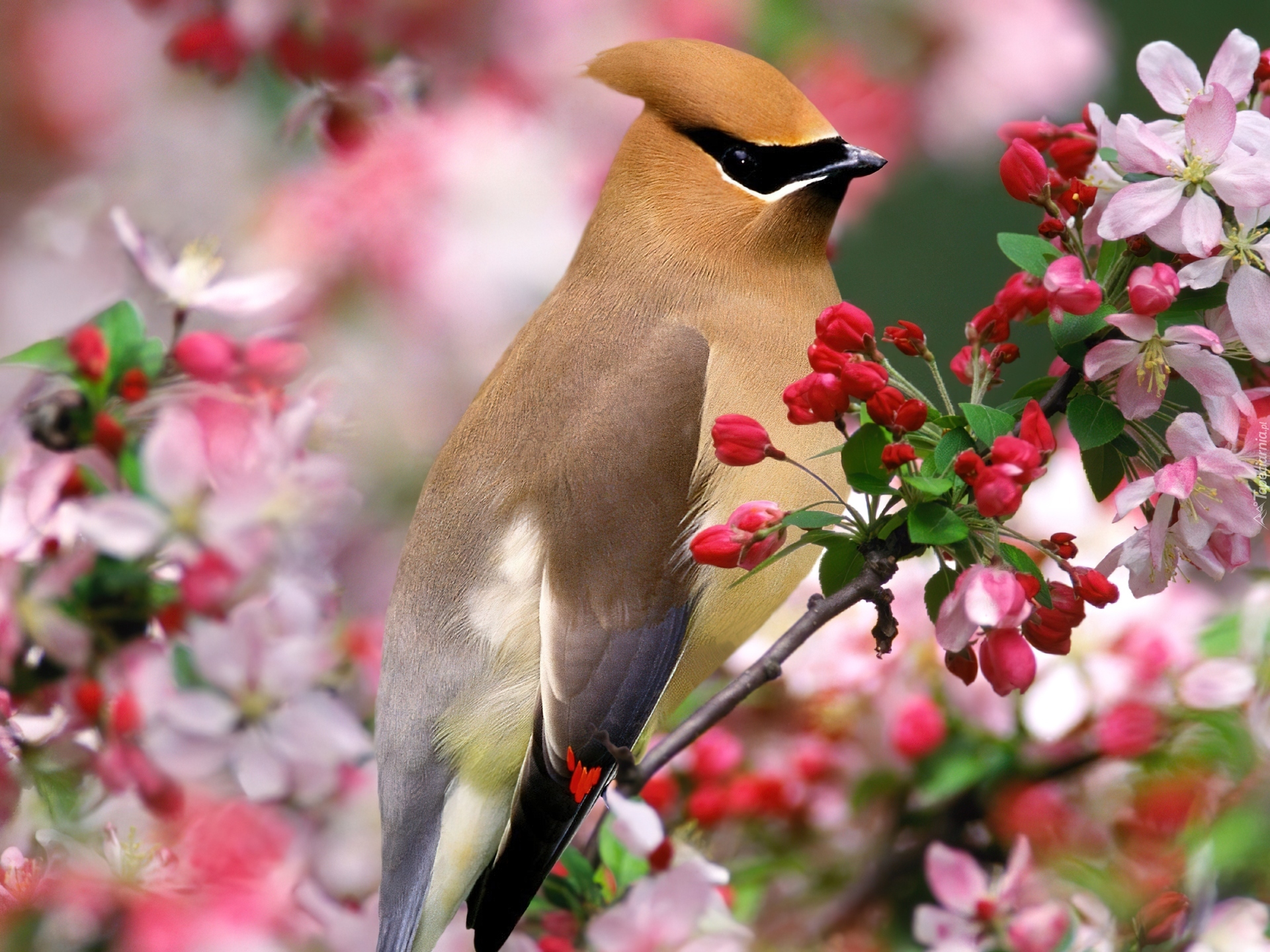 Edytor tapety: Ptak, Gałązka, Kwiaty, Jemiołuszka