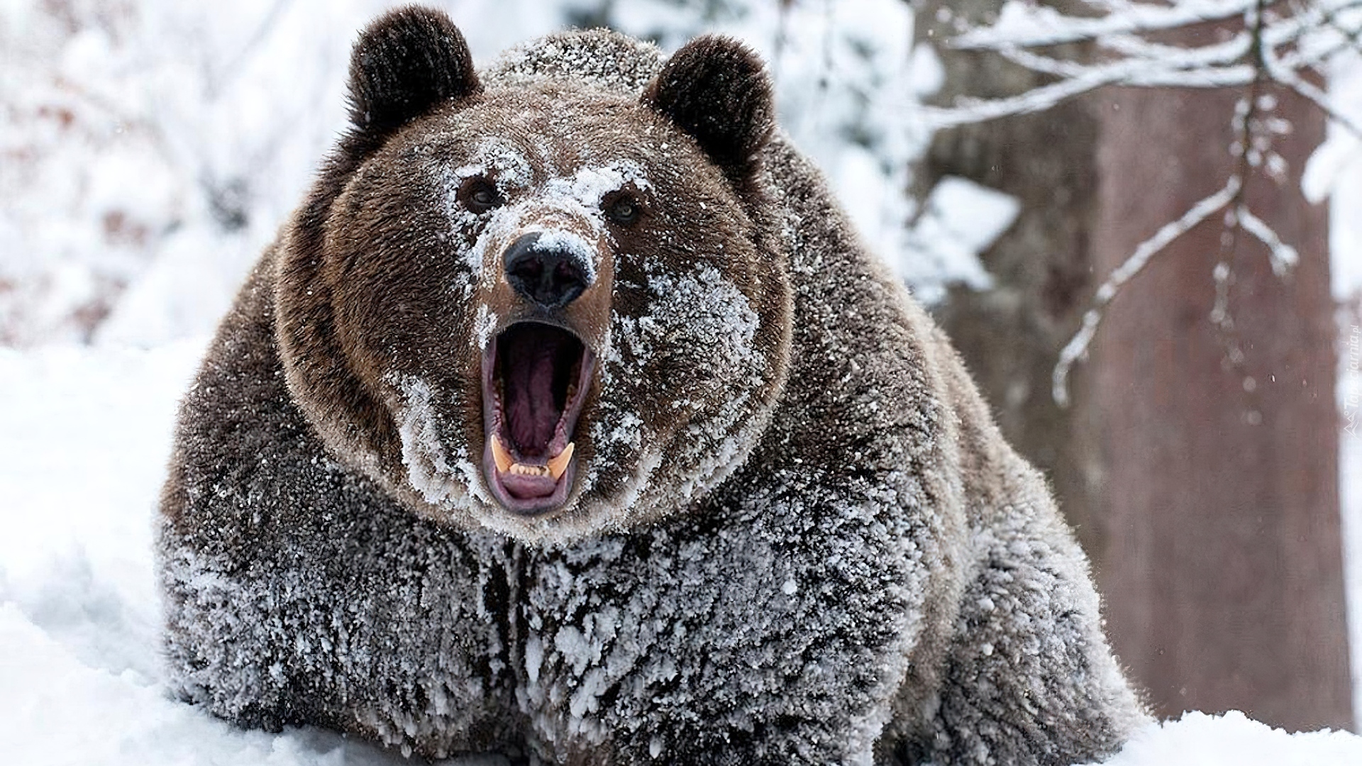 Edytor tapety: Ryczący, Niedźwiedź, Brunatny, Śnieg
