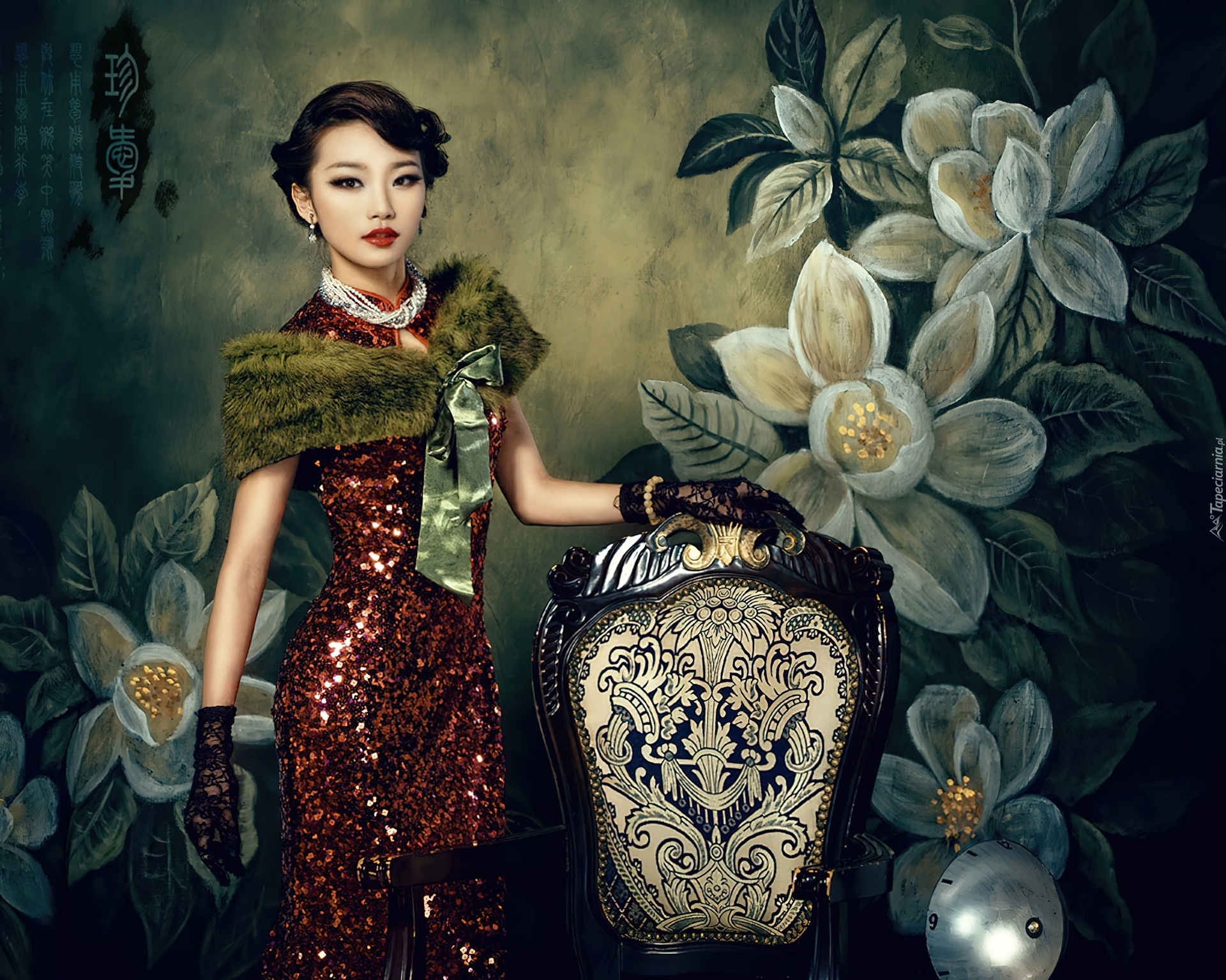 Edytor tapety: Kobieta, Fotel, Kwiaty