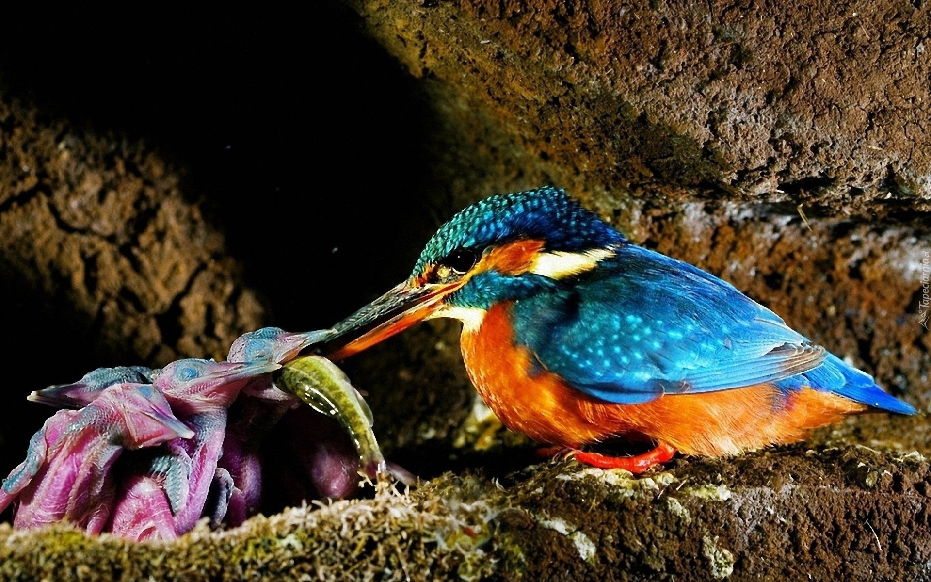 Edytor tapety: Karmiący, Zimorodek, Młode, Gniazdo