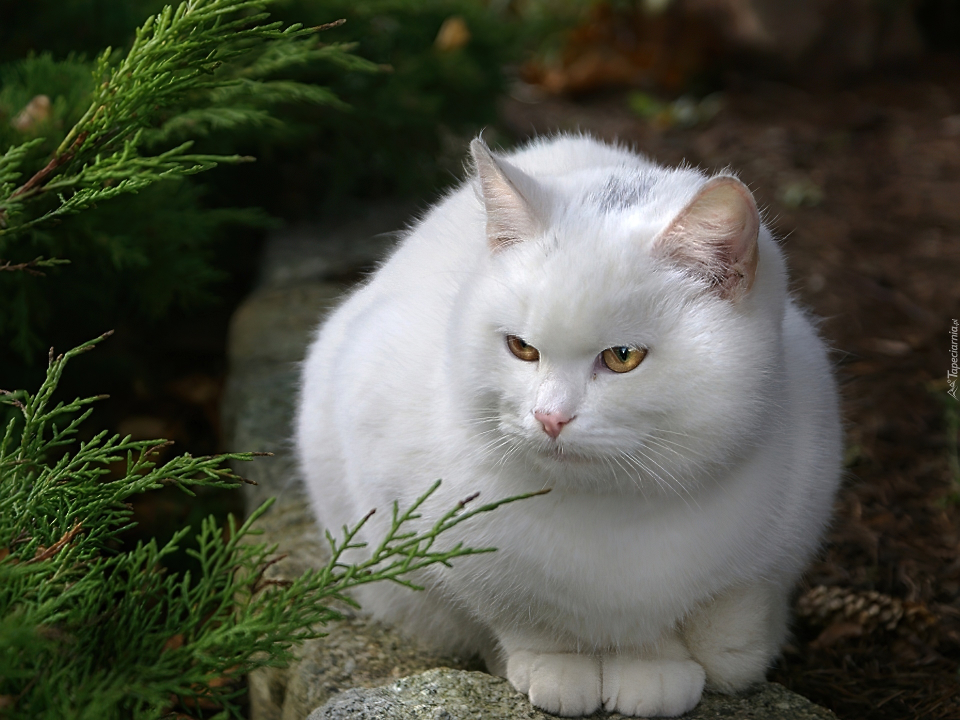 Edytor tapety: Gałązki, Drzewa, Murek, Biały, Kot