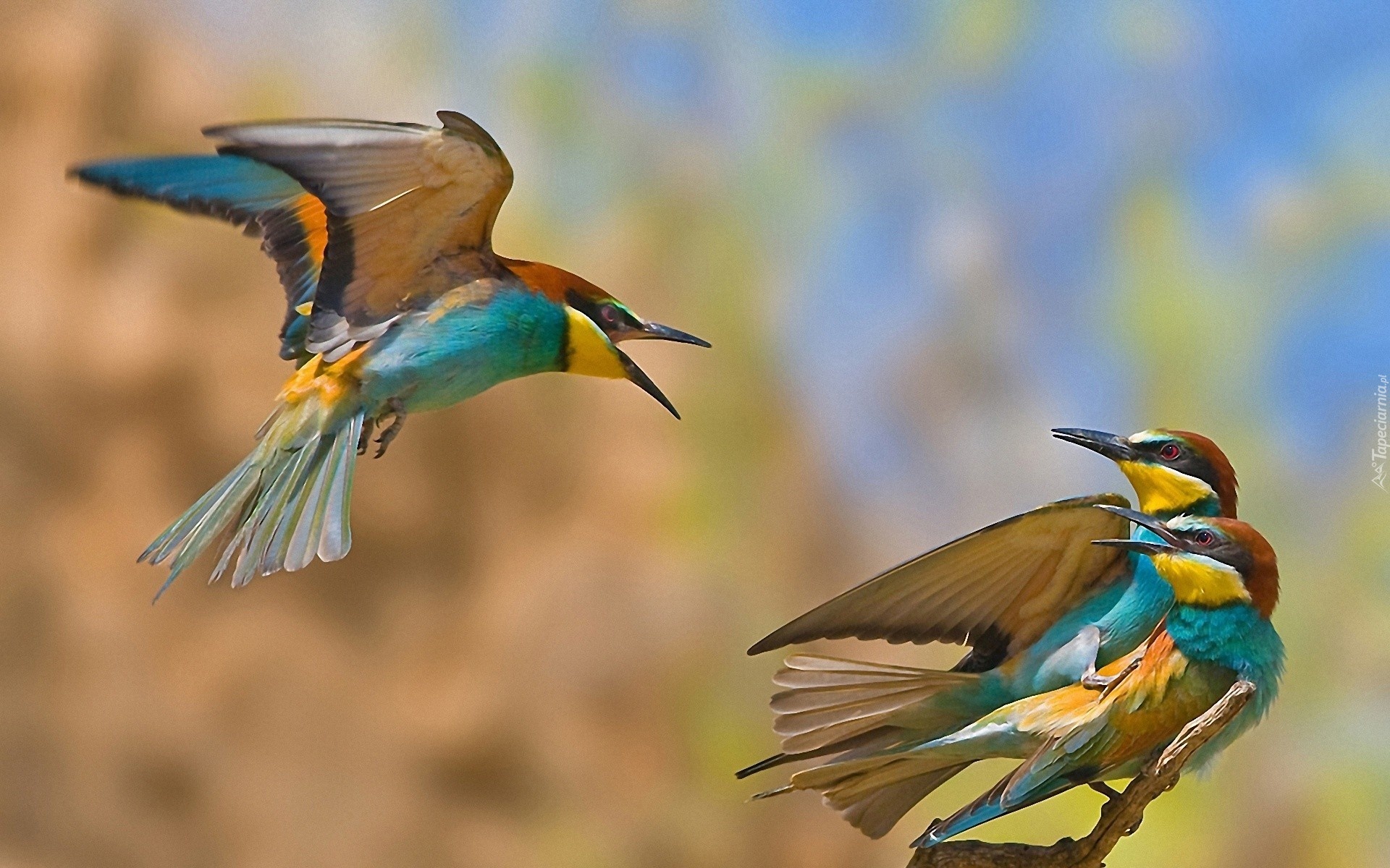 Edytor tapety: Trzy, Kolorowe, Ptaszki