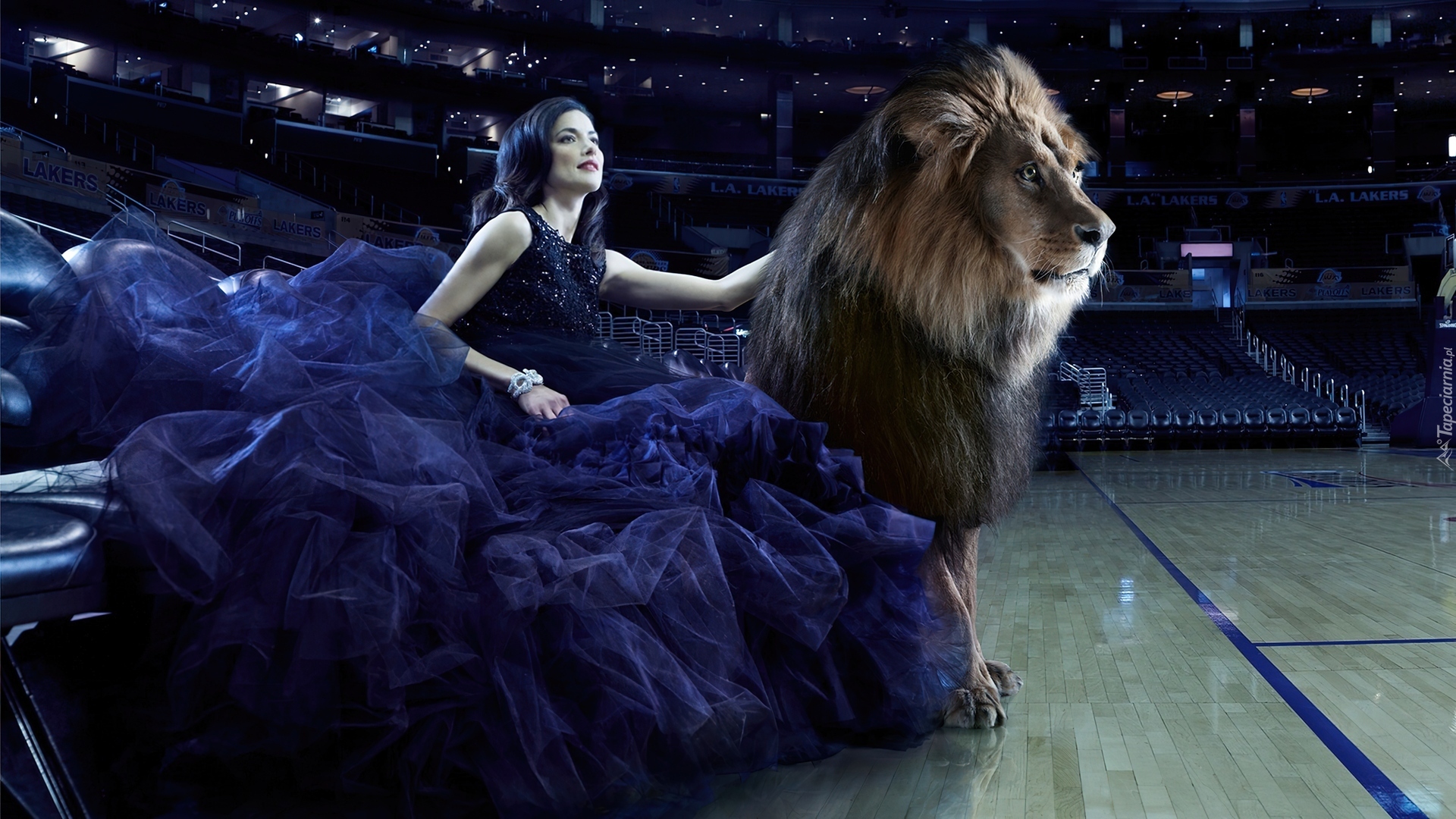 Edytor tapety: Kobieta, Widownia, Krzesła, Lew