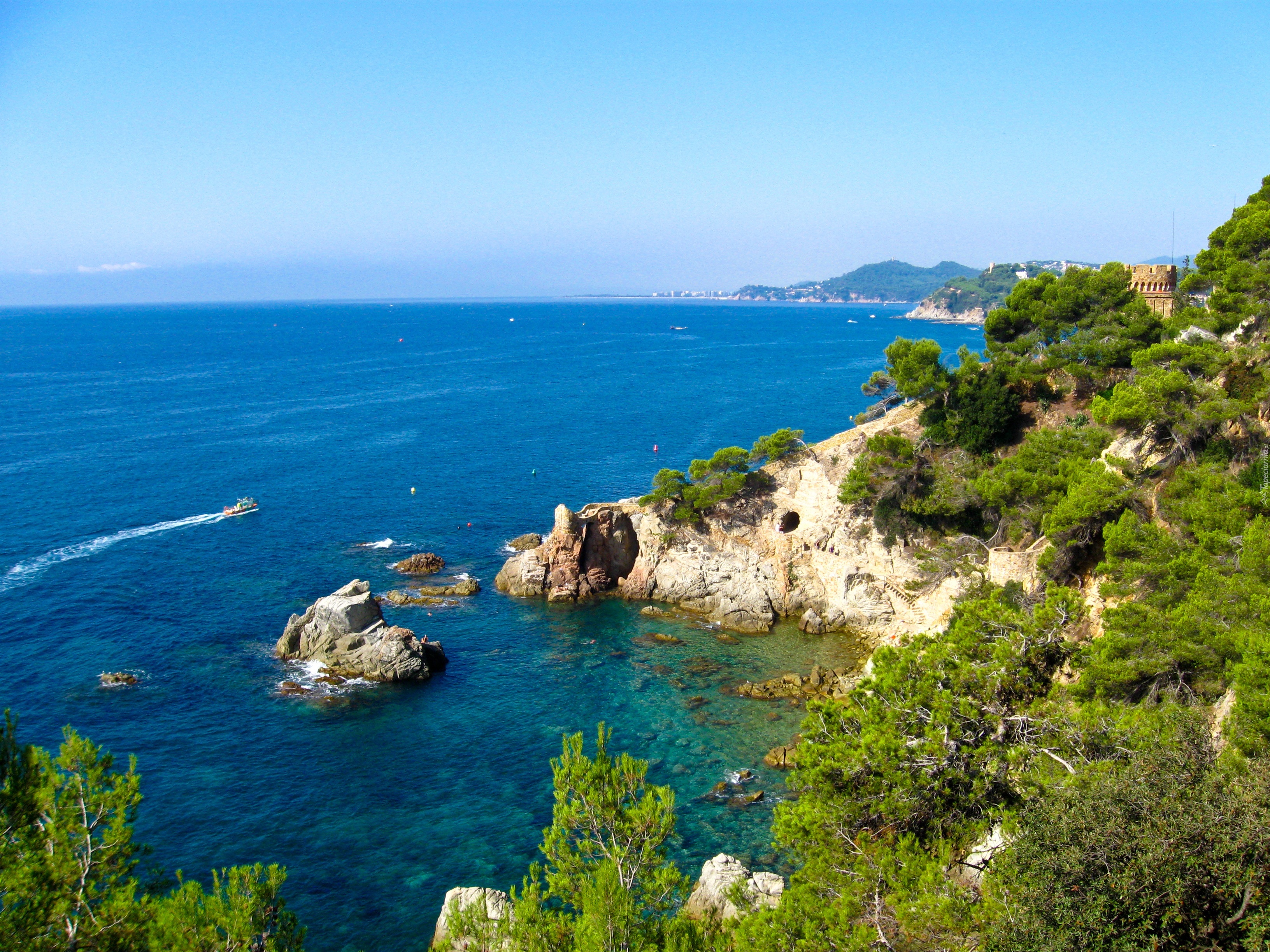 Edytor tapety: Morze, Skała, Zieleń, Motorówka