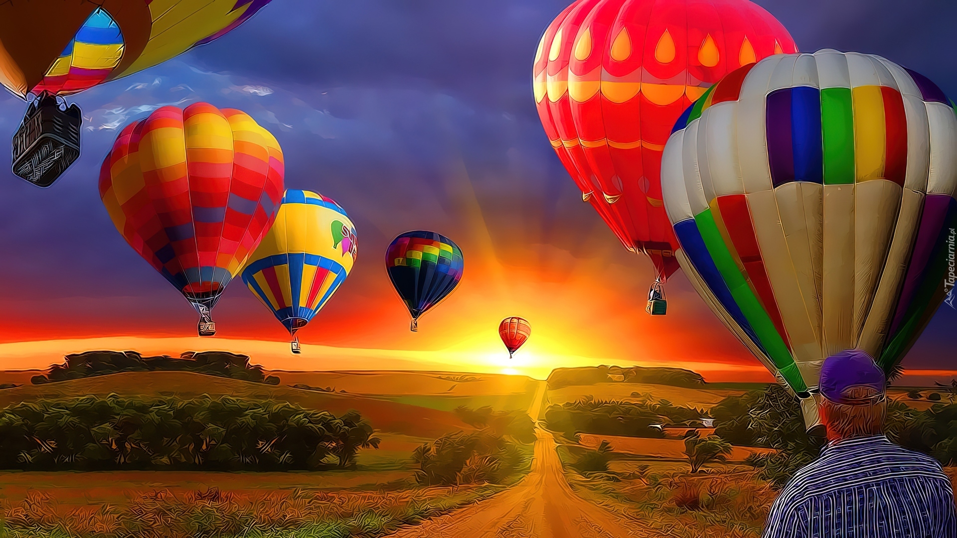 Edytor tapety: Balony, Zachód, Słońca