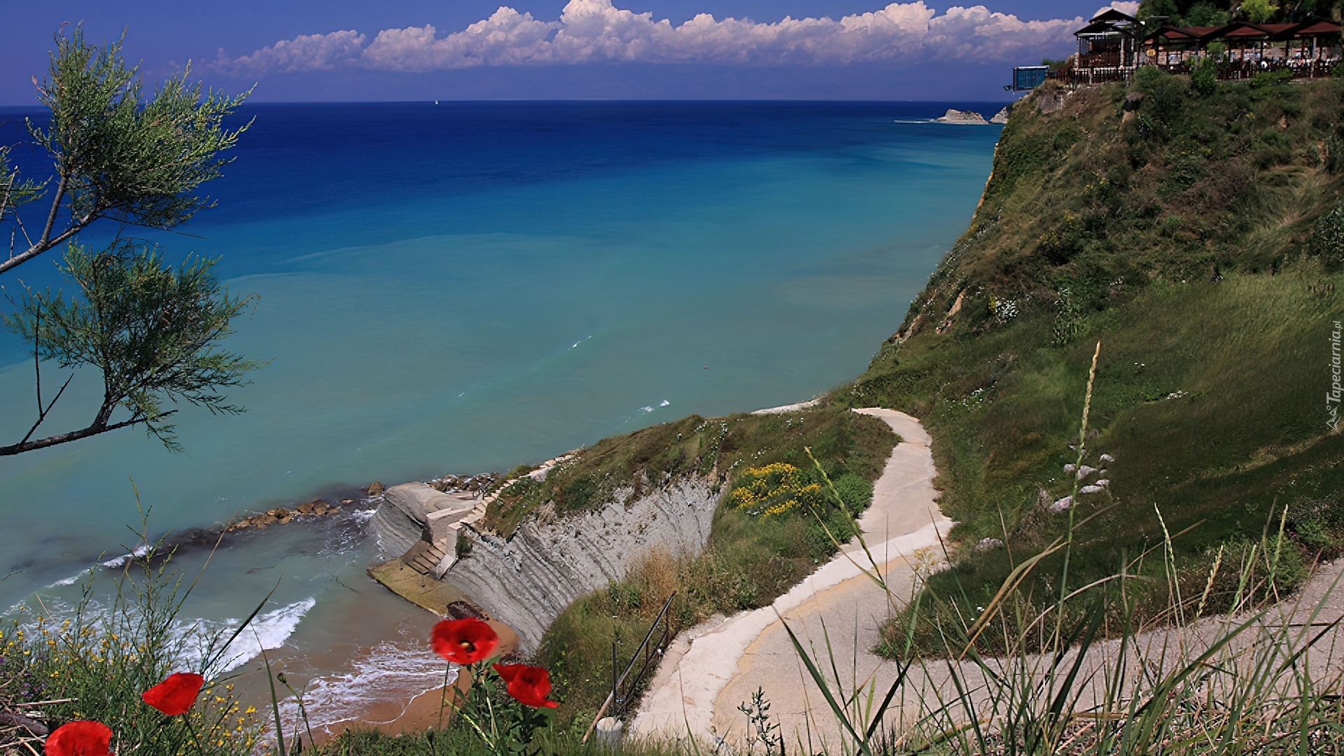 Edytor tapety: Ocean, Ścieżka, Maki, Klif