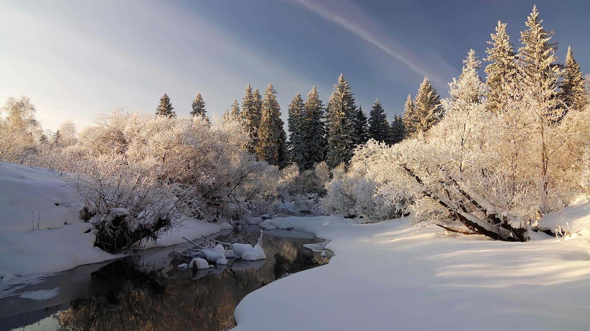 Edytor tapety: Niebo, Las, Rzeka, Śnieg