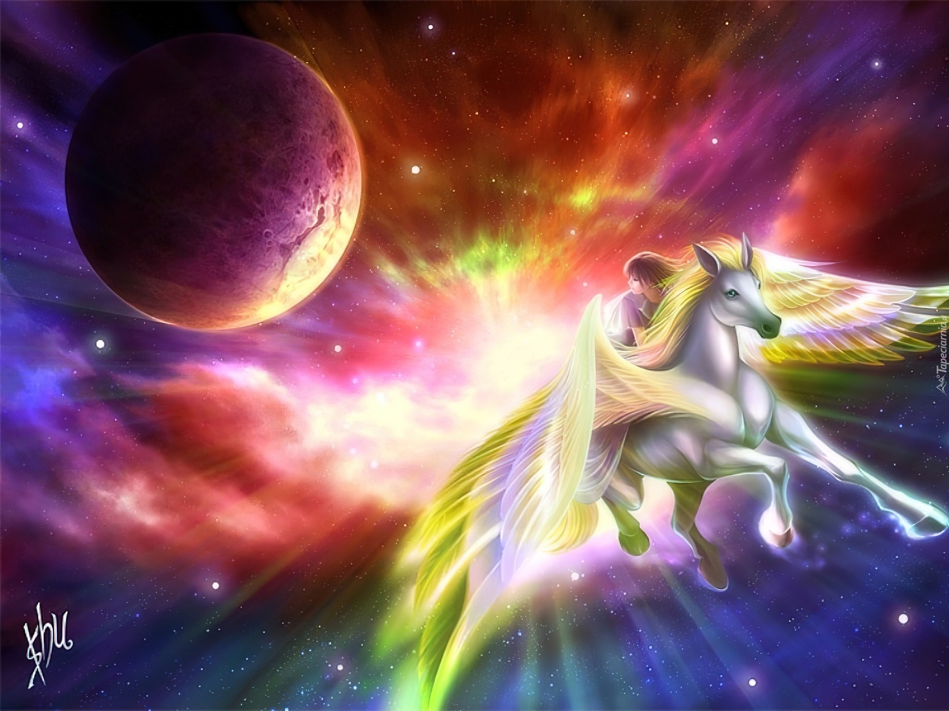 Edytor tapety: Pegaz, Dziewczyna, Planeta