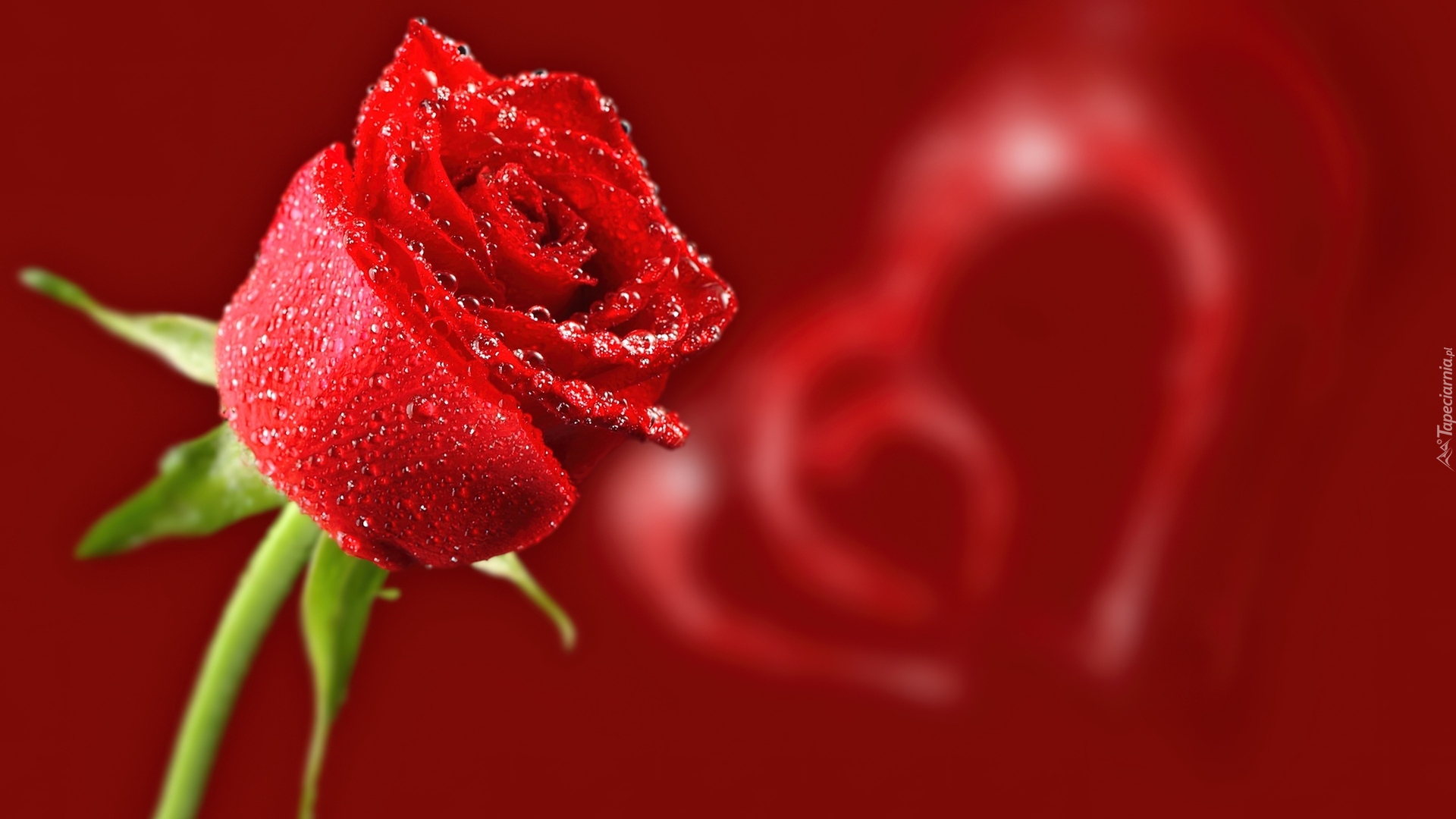 Edytor tapety: Czerwona, Róża, Krople, Rosy, Serduszka
