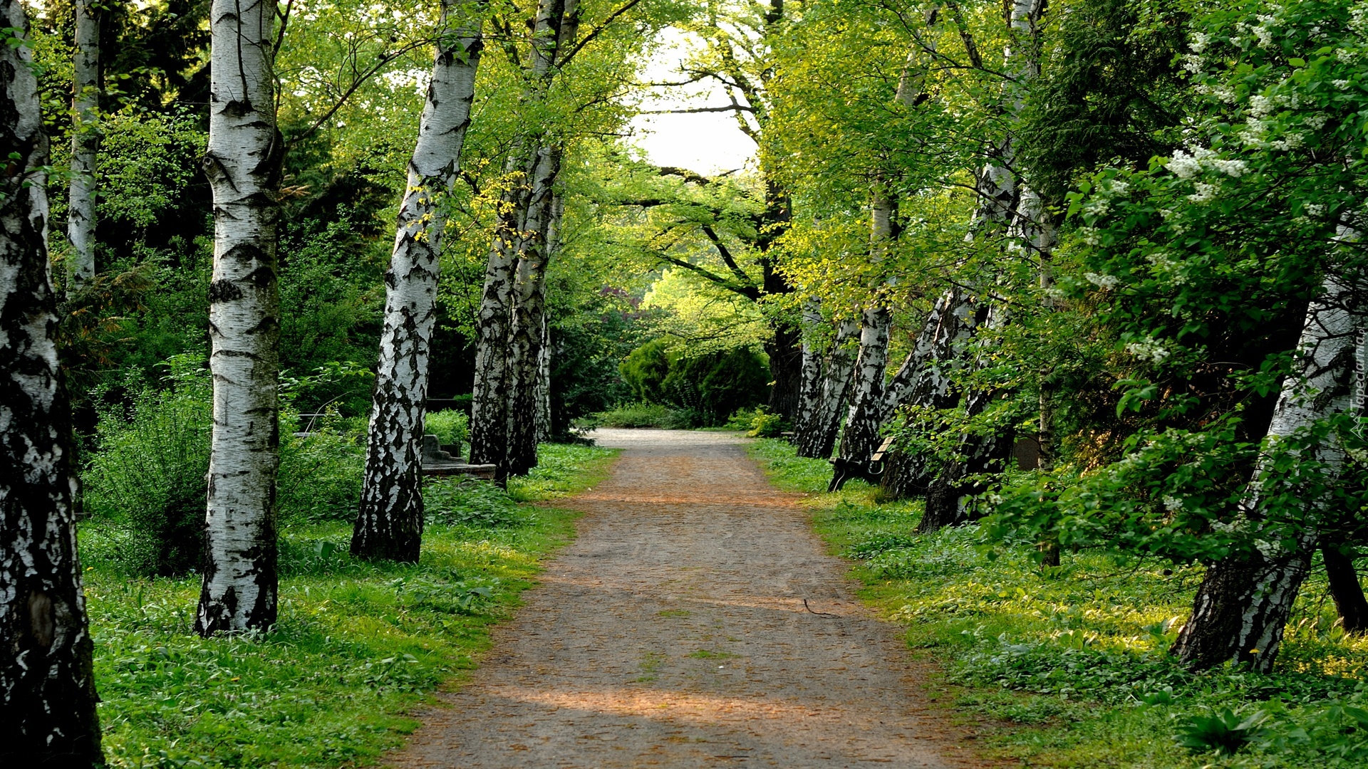 Edytor tapety: Ścieżka, Las, Brzozy