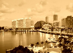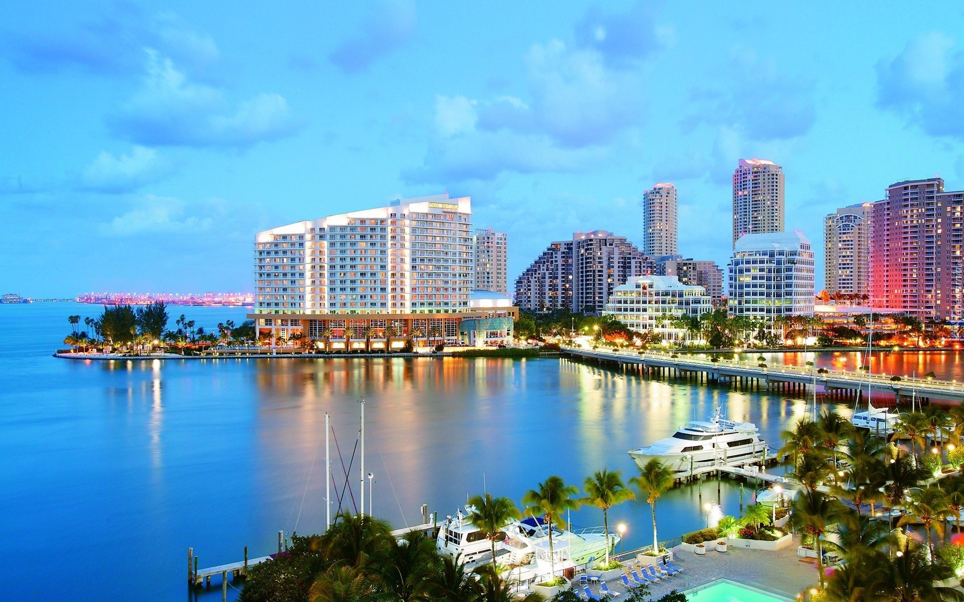 Edytor tapety: Wielkie, Budynki, Woda, Palmy, Port