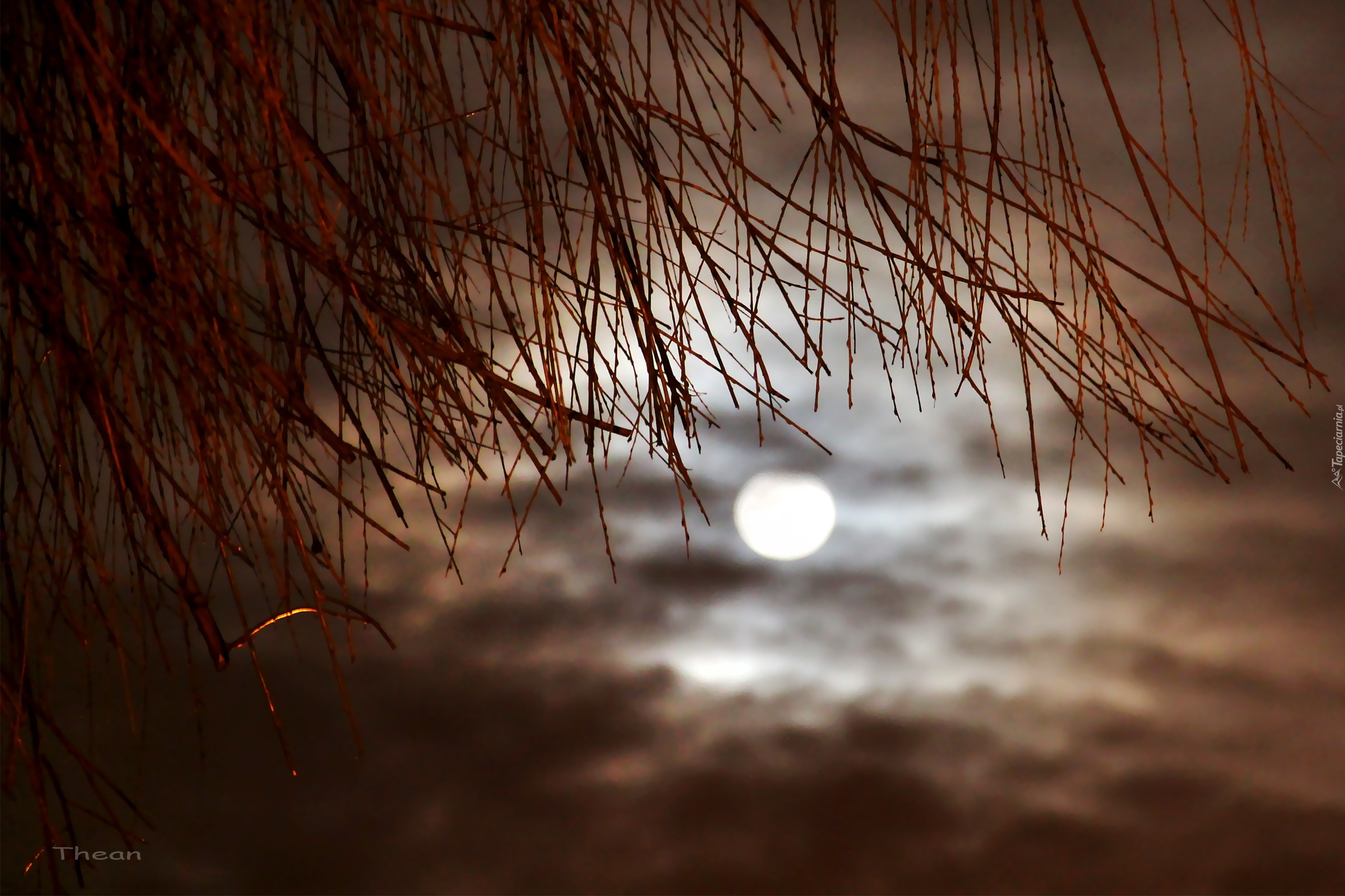Edytor tapety: Gałązki, Nocne, Niebo, Księżyc