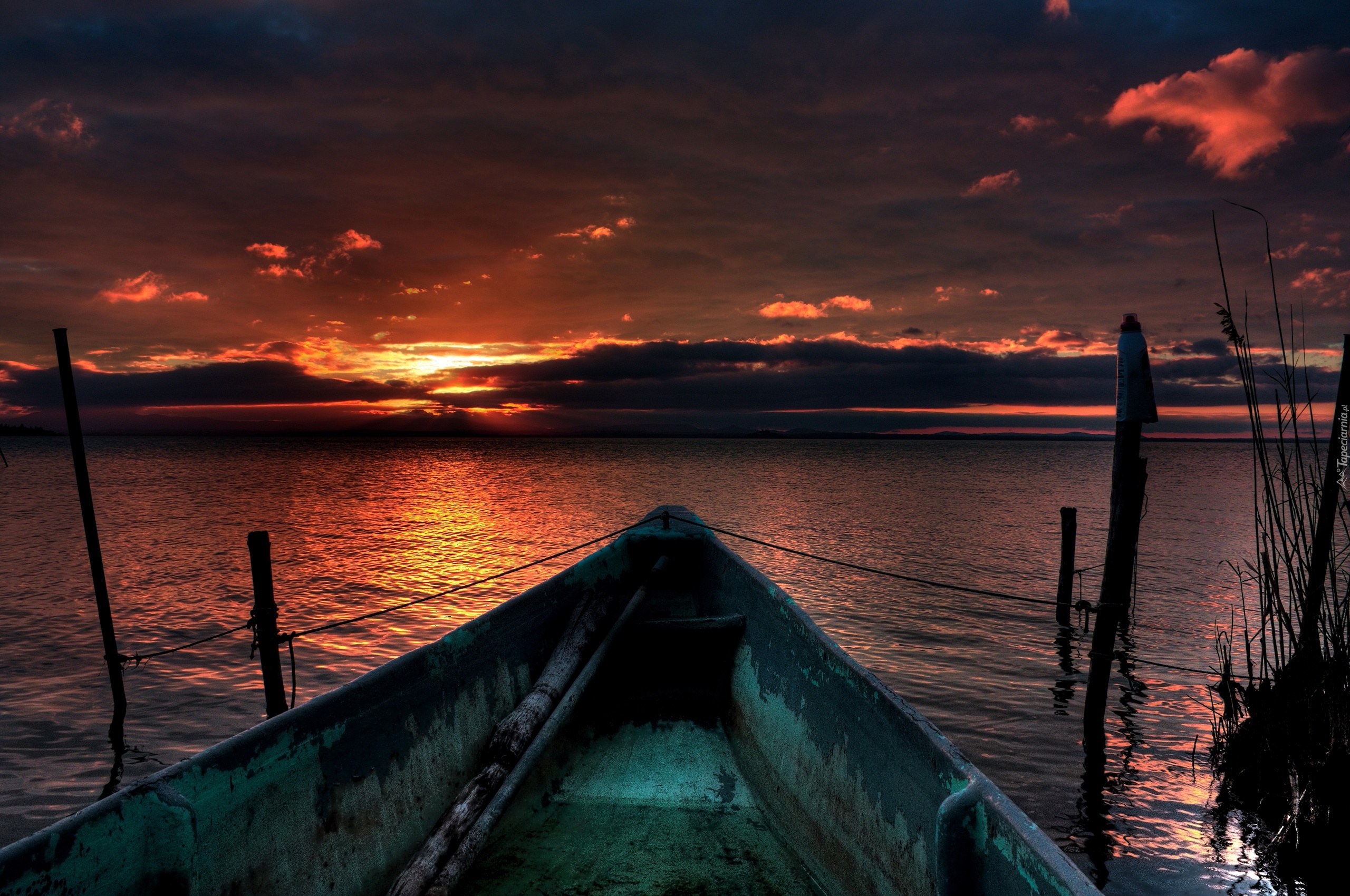 Edytor tapety: Chmury, Jezioro, Zachód, Słońca, Łajba