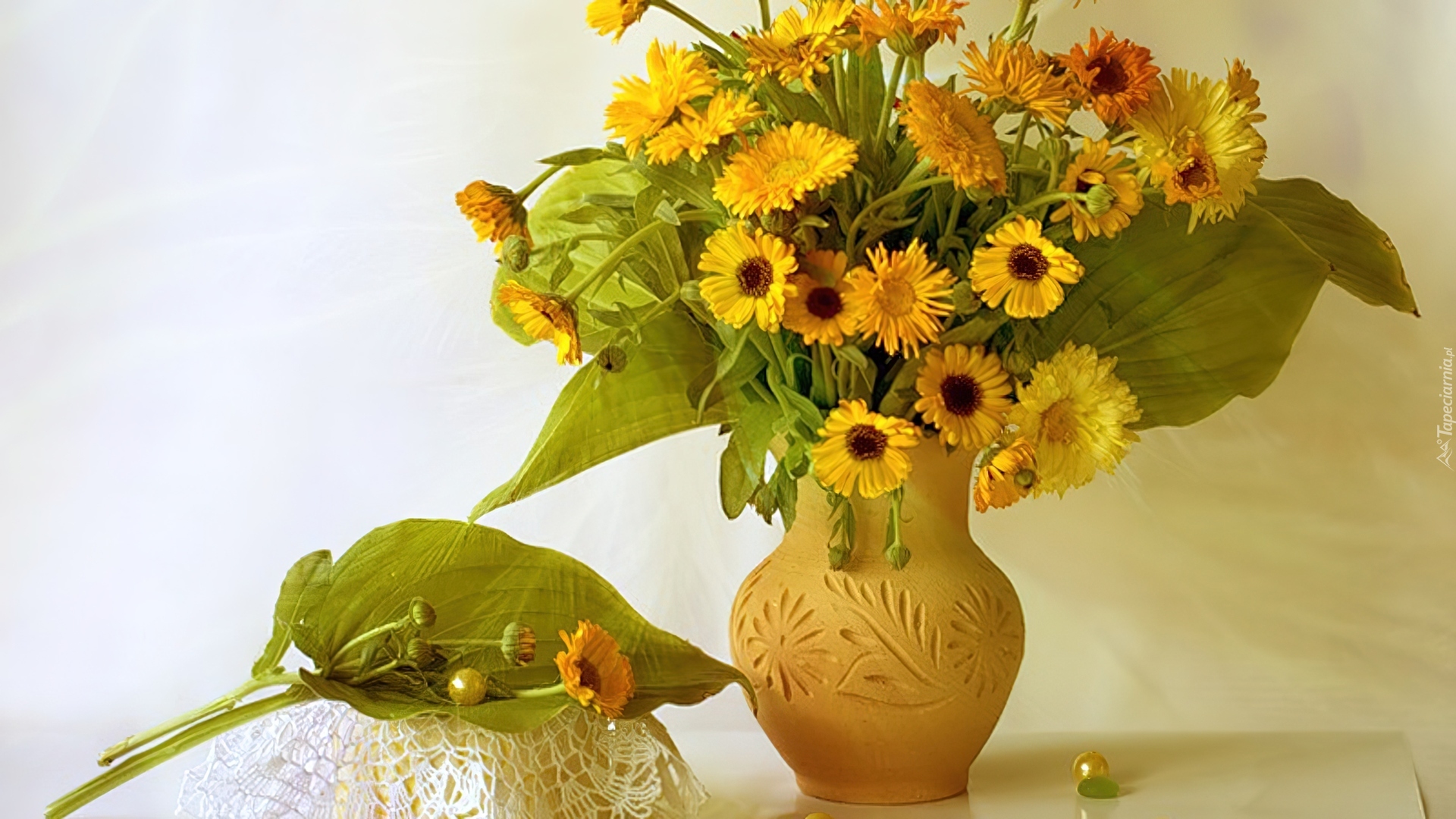 Edytor tapety: Gliniany, Wazon, Żółte, Nagietki