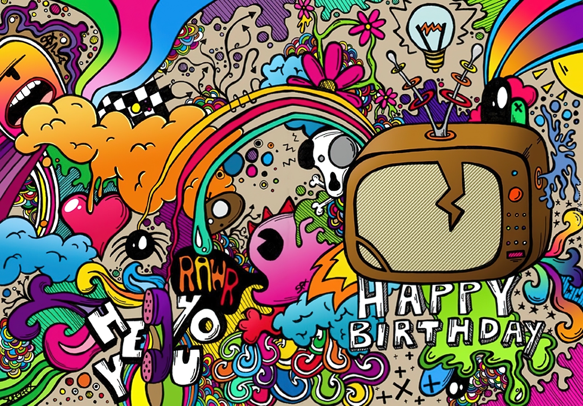 Edytor tapety: Urodziny, Kolorowa, Grafika, Telewizor