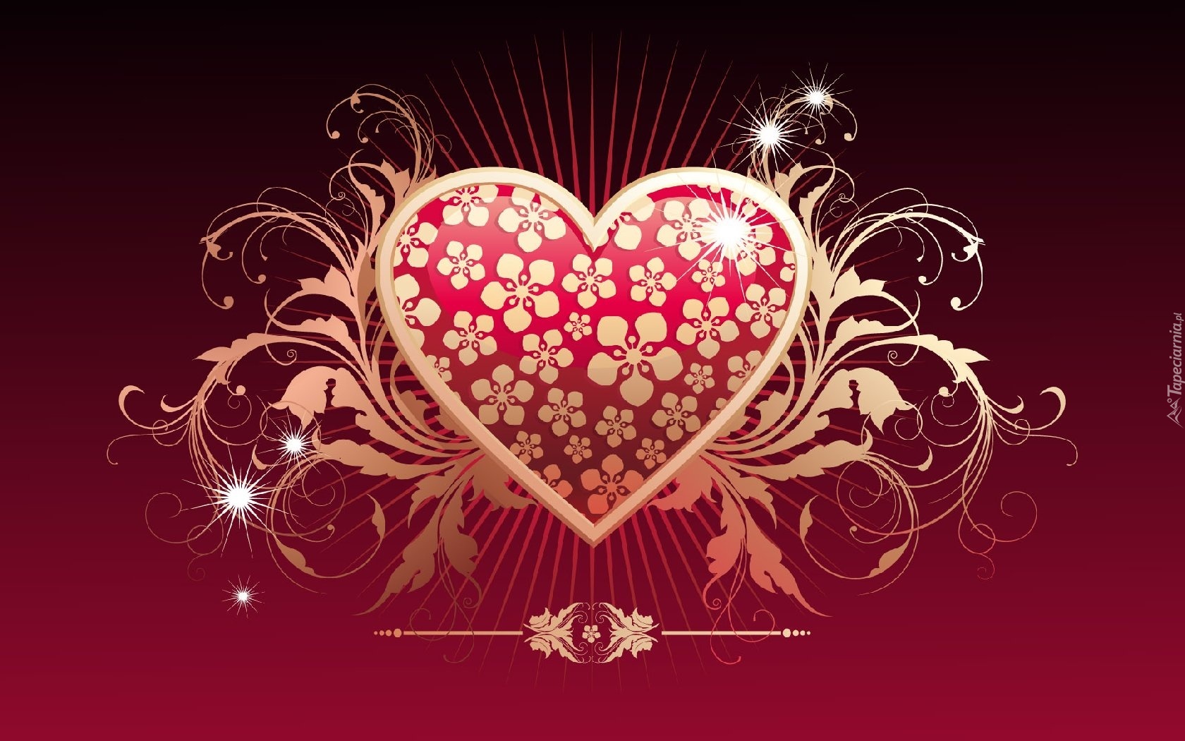 Edytor tapety: Serce, Kwiaty, Promienie