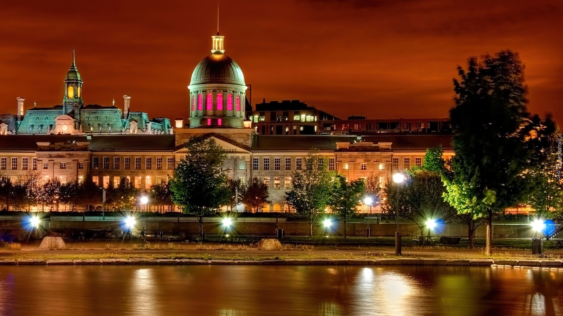 Edytor tapety: Miasto, Noc, Rzeka, Latarnie