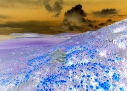 Edytor tapety: Morze, Kwiaty, Łąka, Wzgórza