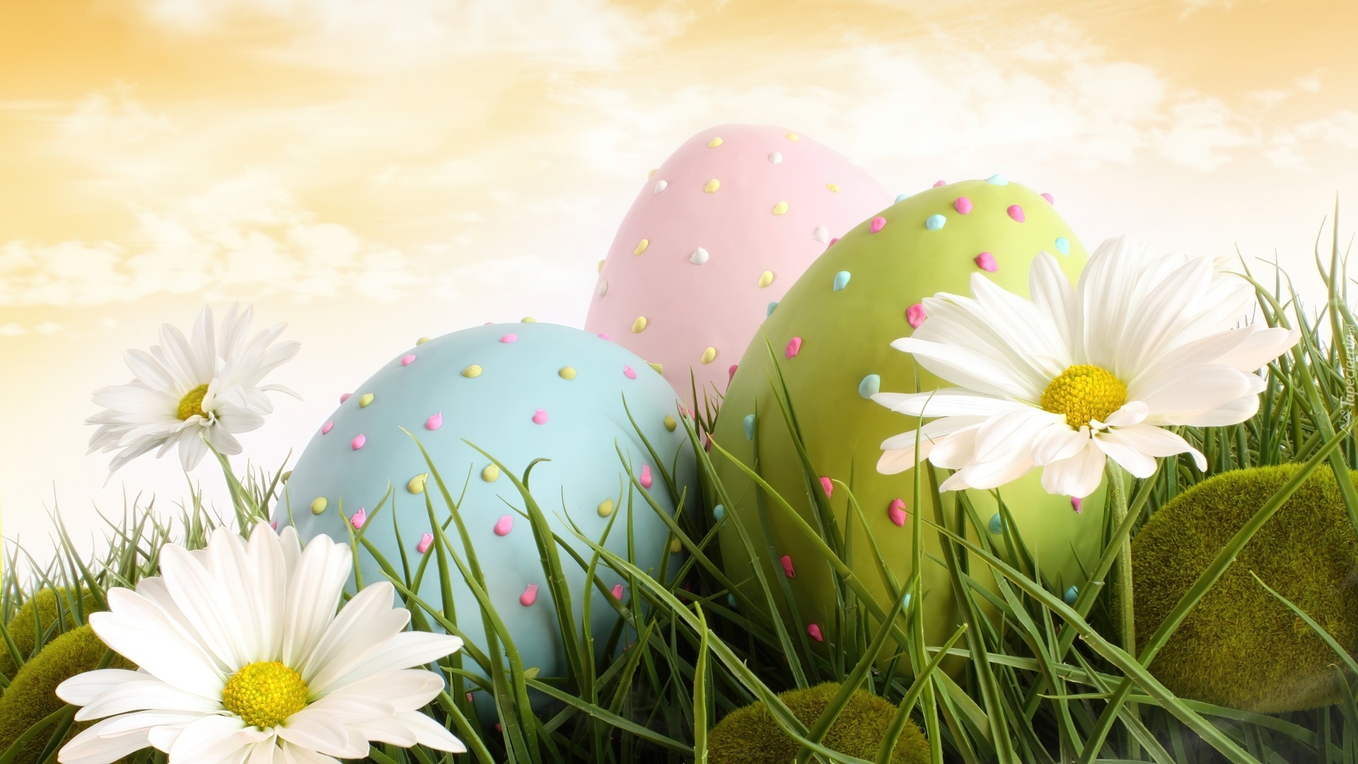 Edytor tapety: Pisanki, Kropki, Trawa, Margerytki