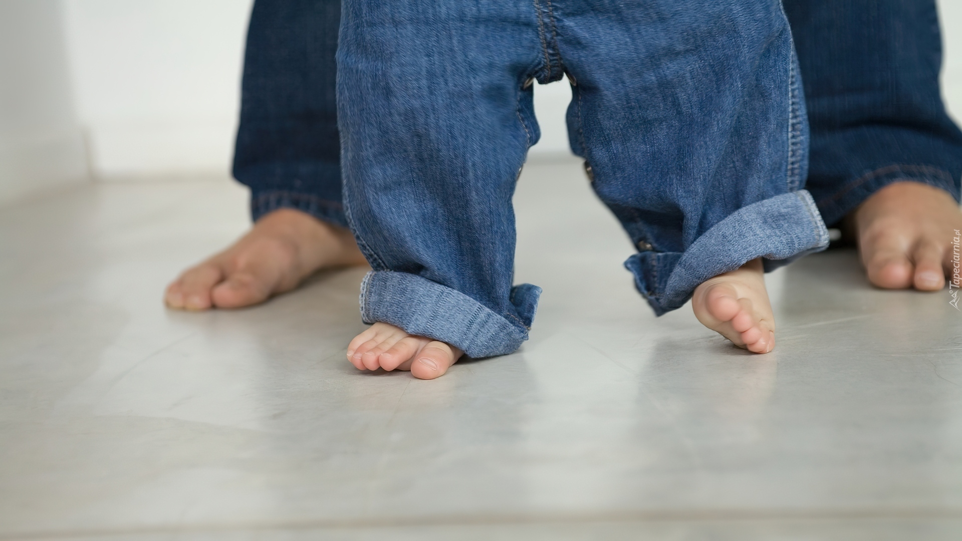 Edytor tapety: Tata, Dziecko, Kroki, Dżinsy