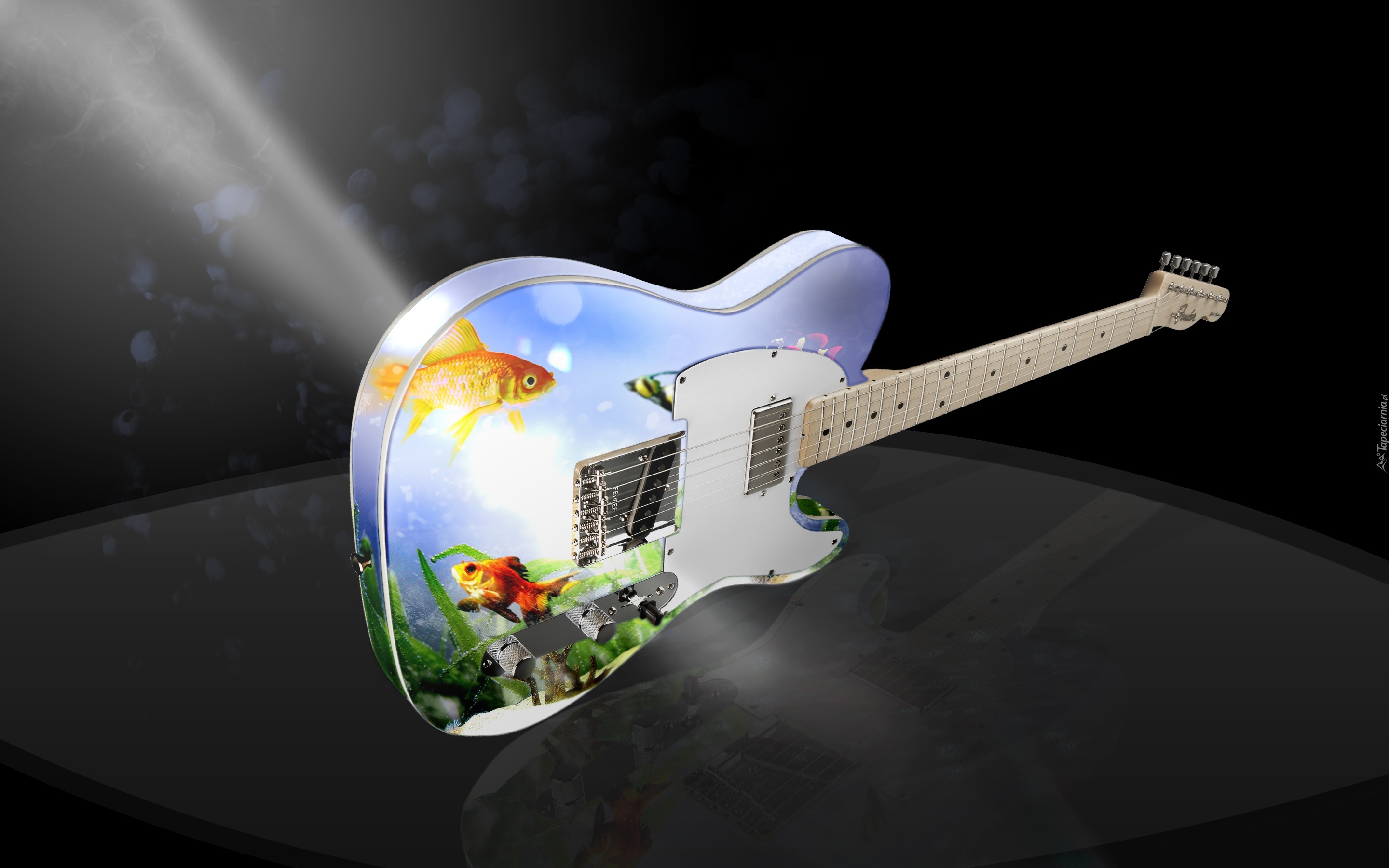 Edytor tapety: Kolorowa, Gitara, Rybki, Gryf