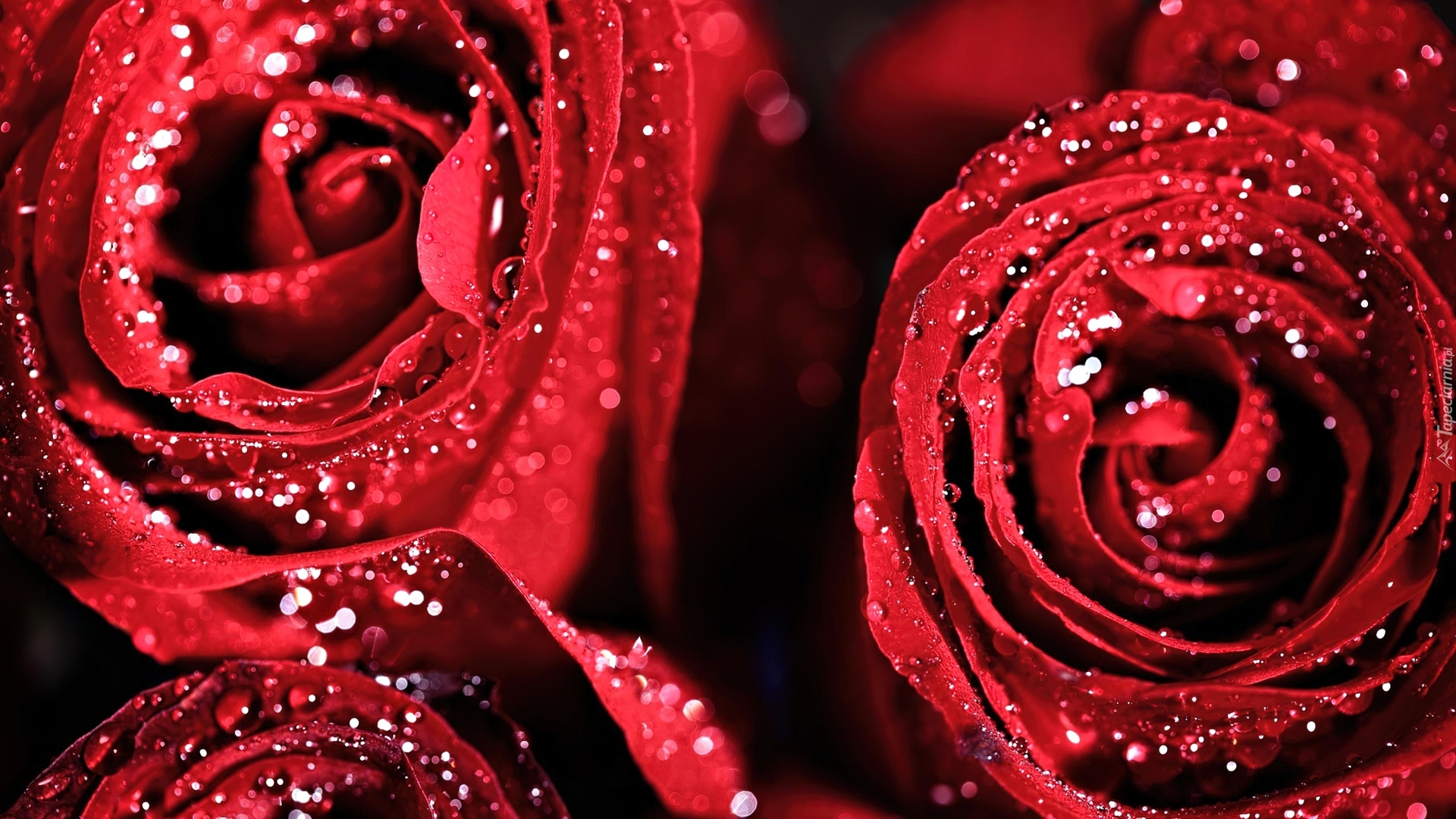 Edytor tapety: Czerwone, Róże, Krople, Rosy