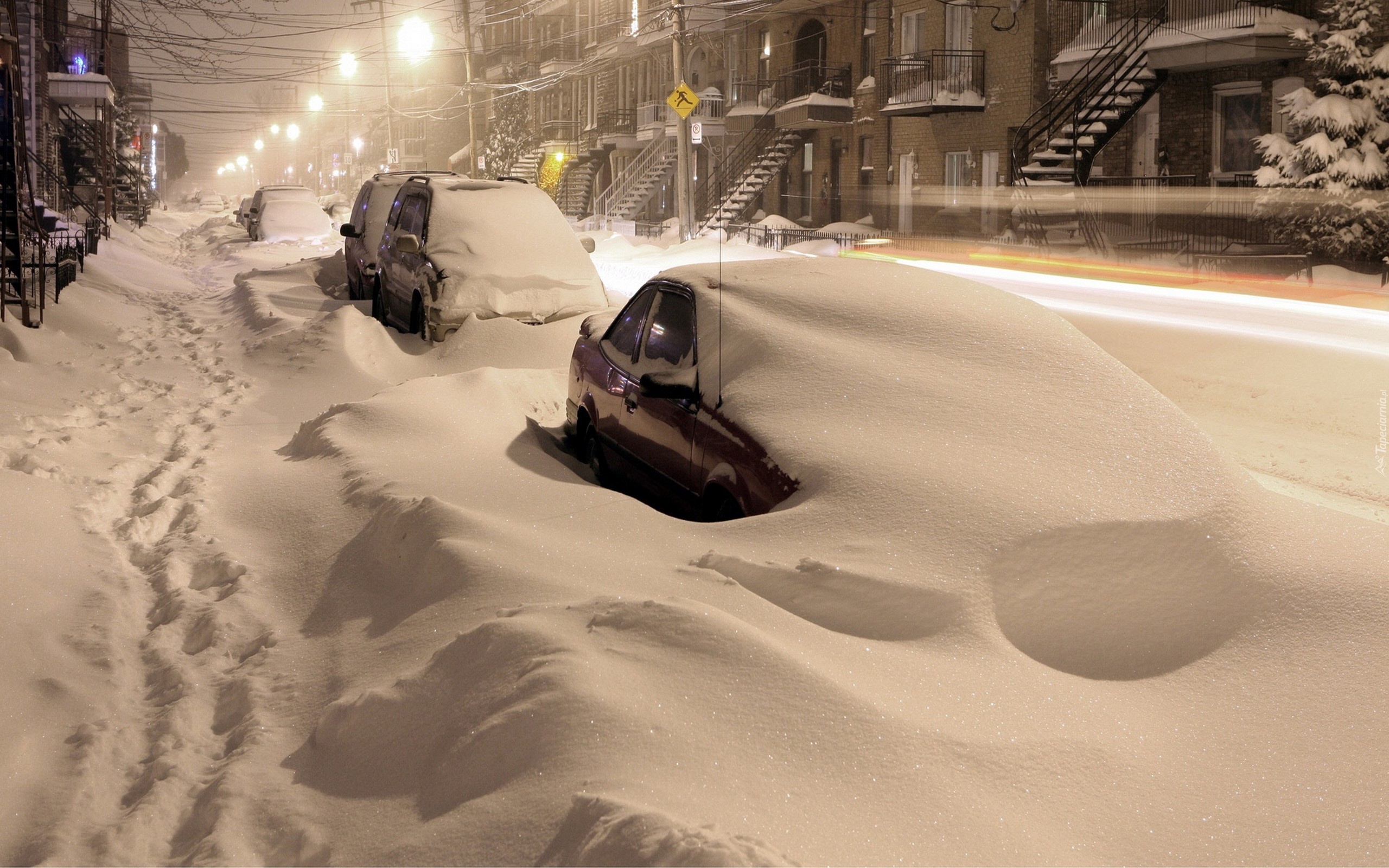Edytor tapety: Ulica, Noc, Zima, Zaspy