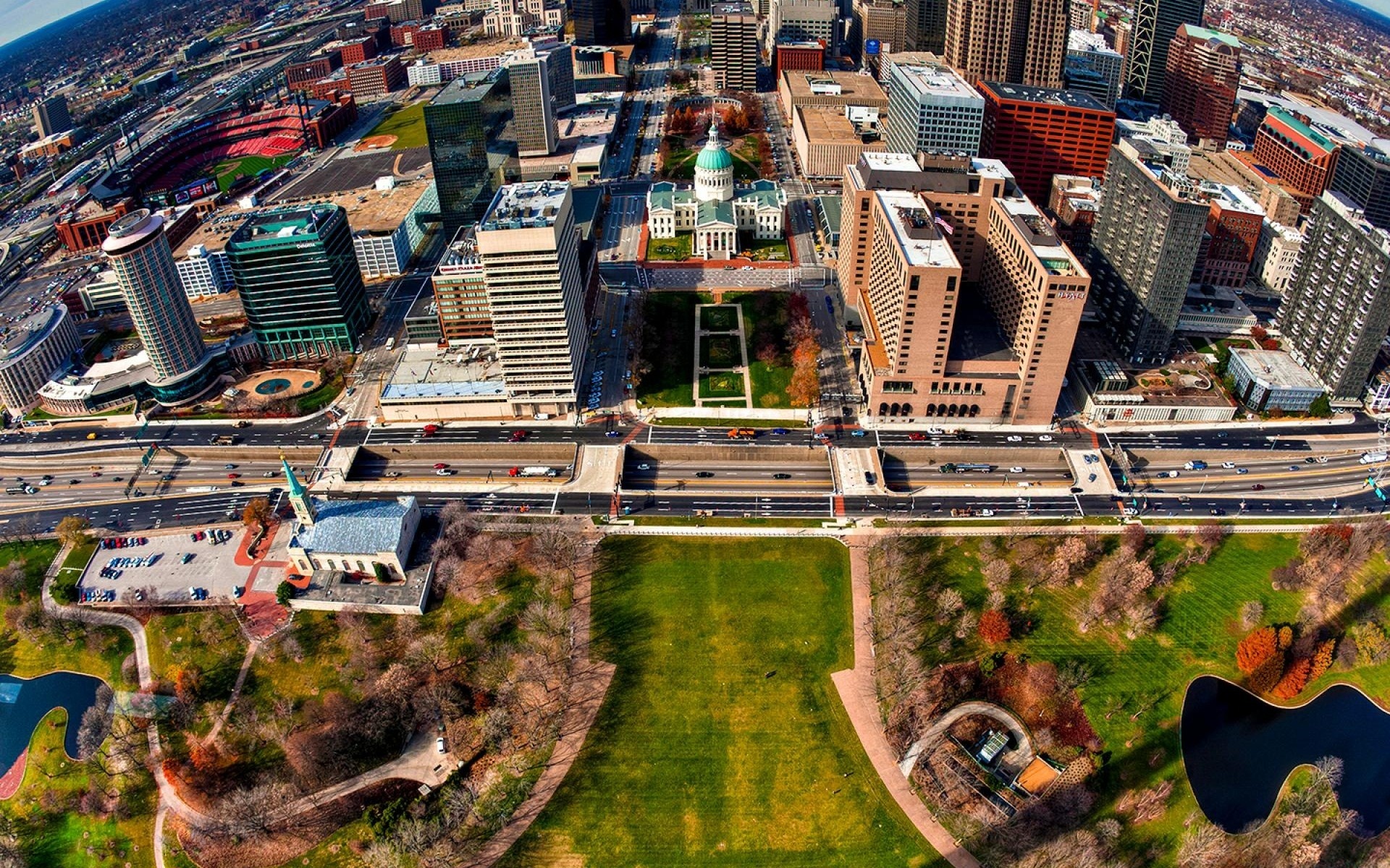 Edytor tapety: Miasto, Wieżowce, Park, Ulica