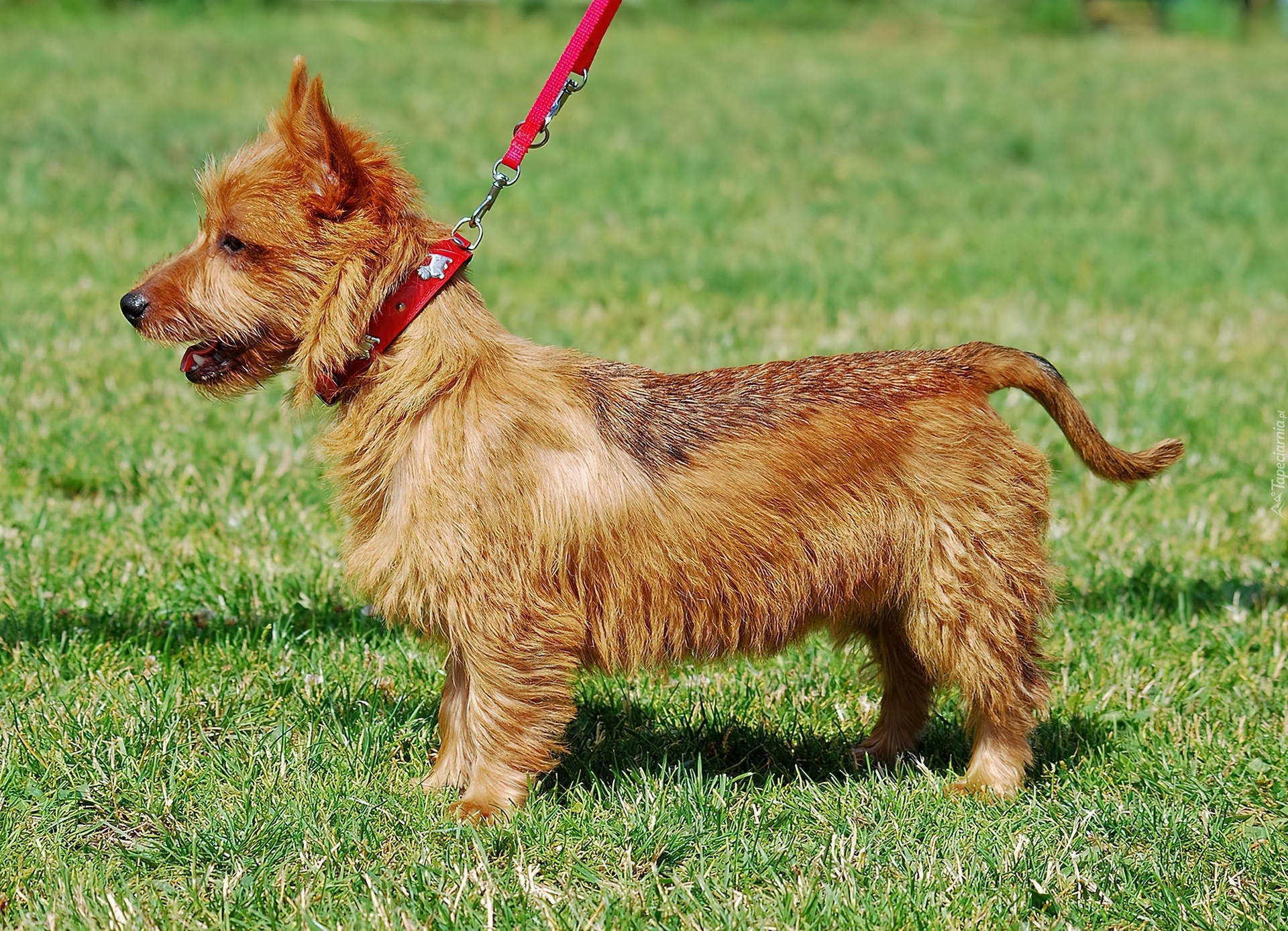 Edytor tapety: Pies, Terier Australijski, Smycz, Trawnik