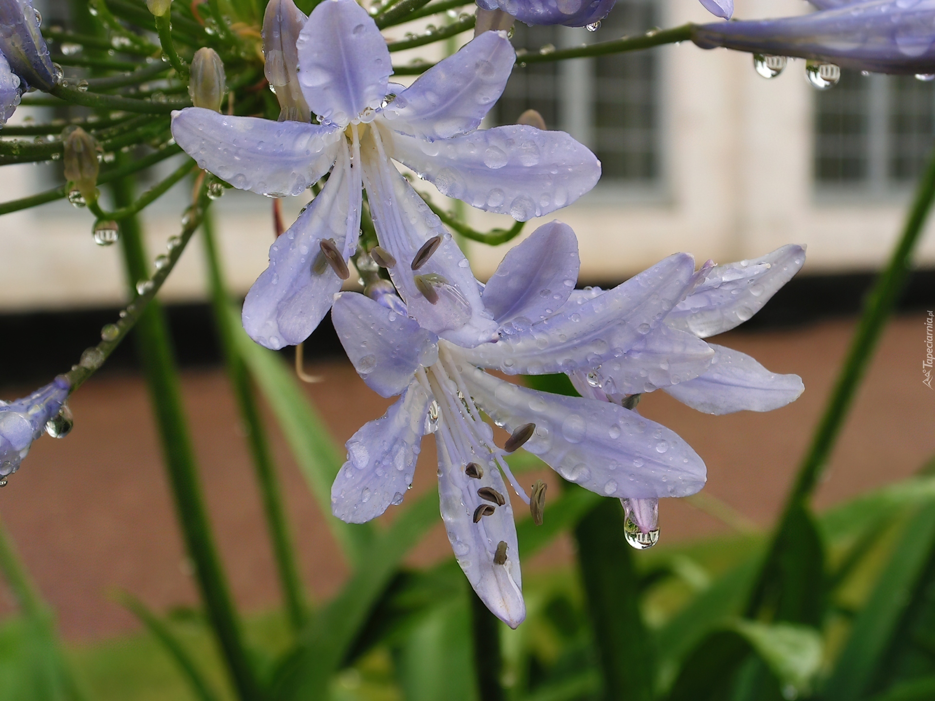 Edytor tapety: Kwiat, Agapant Afrykański, Krople, Wody