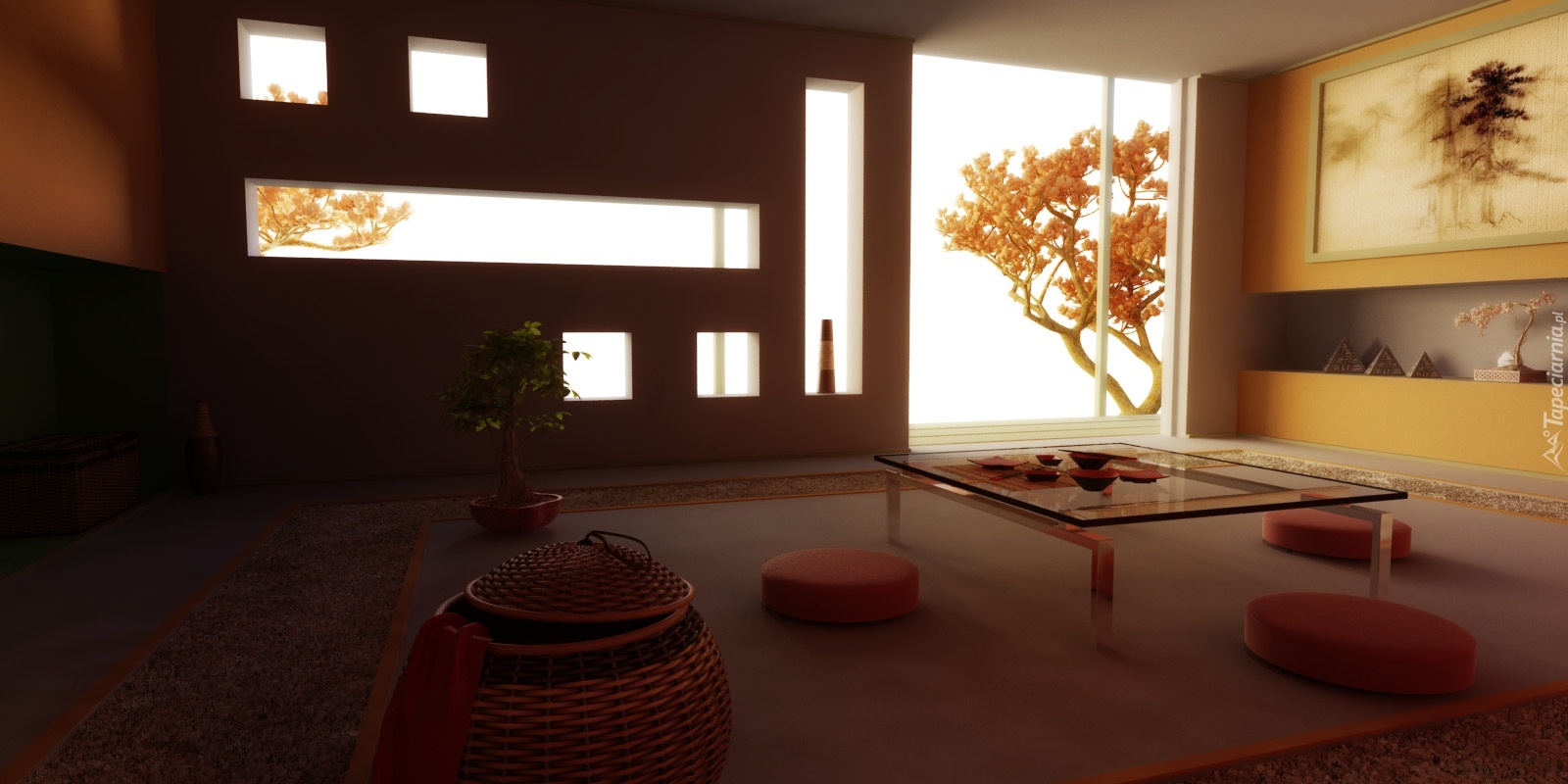 Edytor tapety: Pokój, Geometryczne, Okna, Pufy