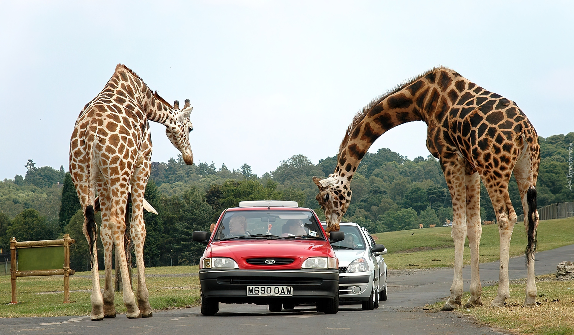 Edytor tapety: Żyrafy, Samochody, Safari