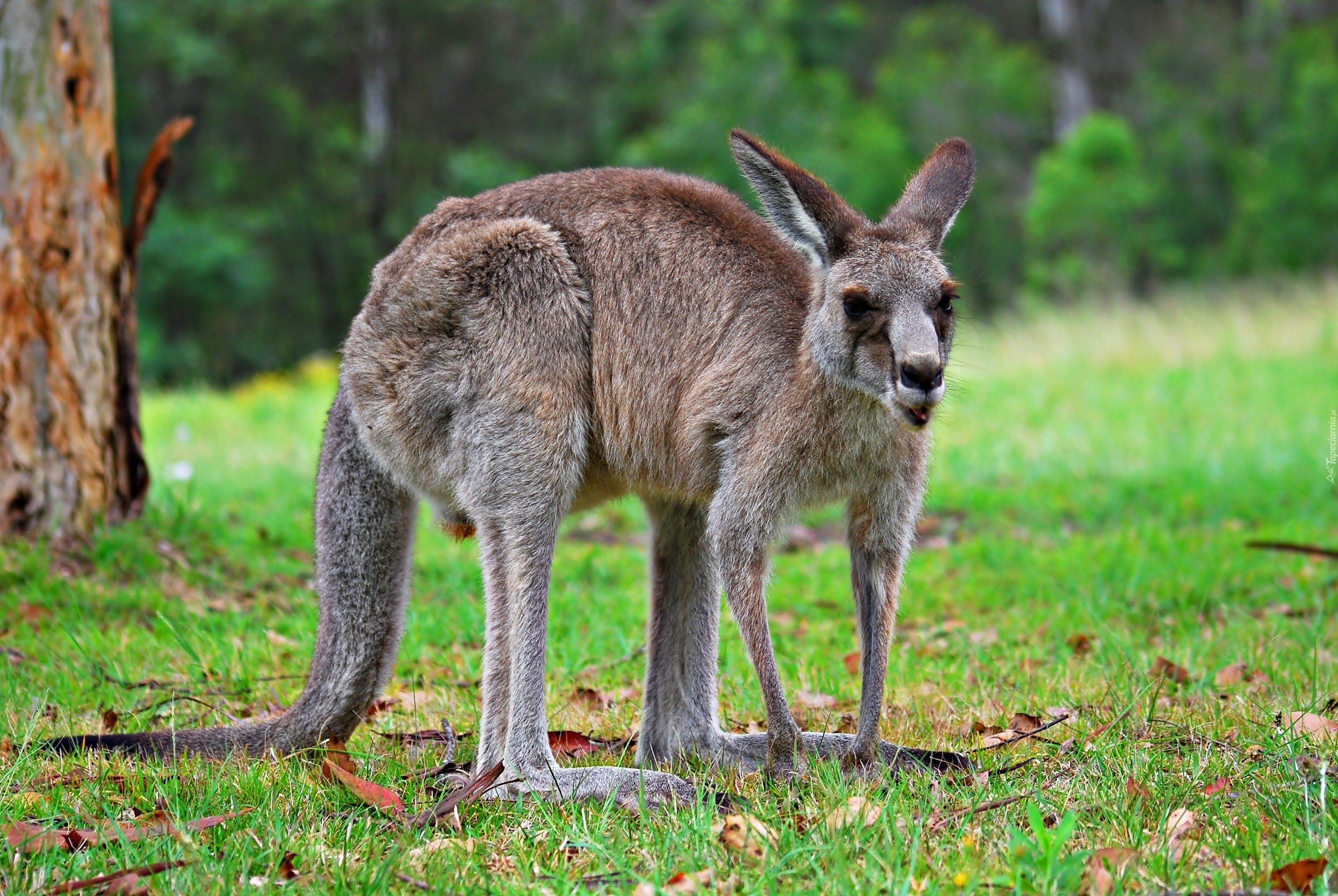 Edytor tapety: Kangur, Trawa, Pień