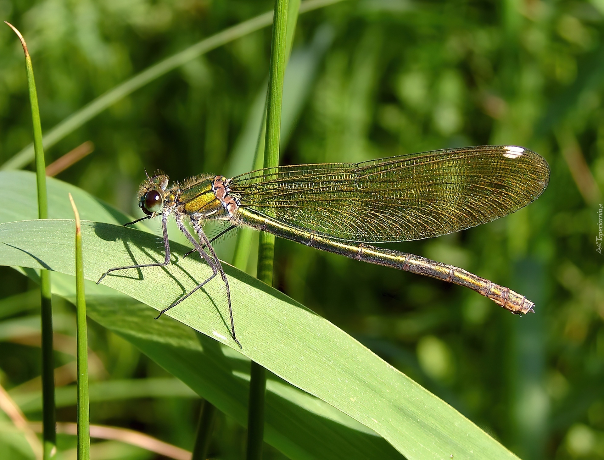 Edytor tapety: Ważka, Liście, Źdźbła, Trawy