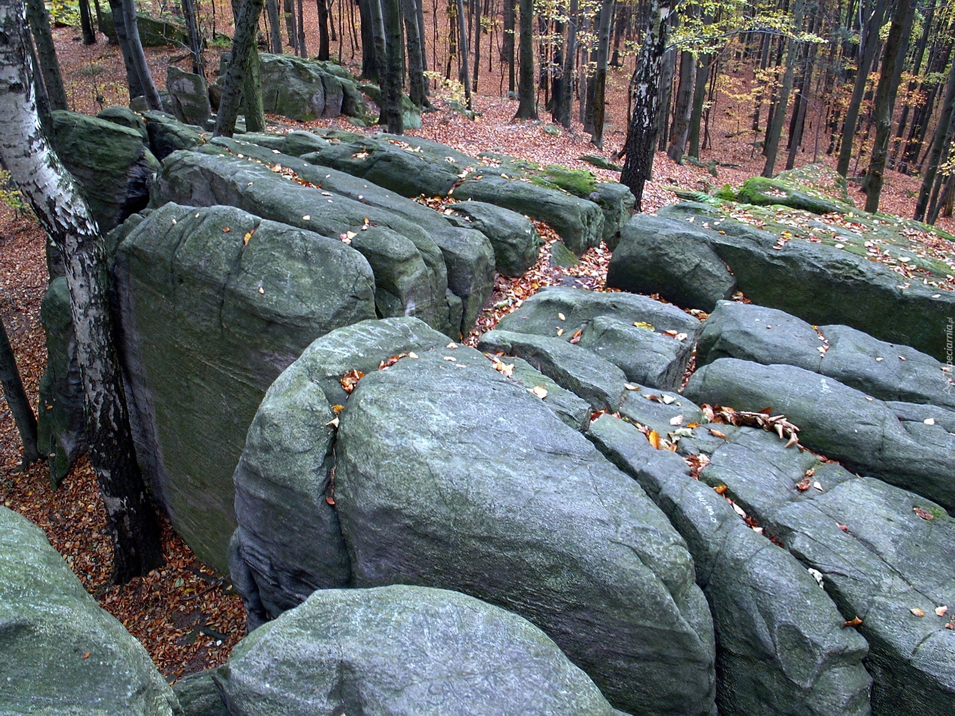 Edytor tapety: Głazy, Zbocze, Drzewa, Las