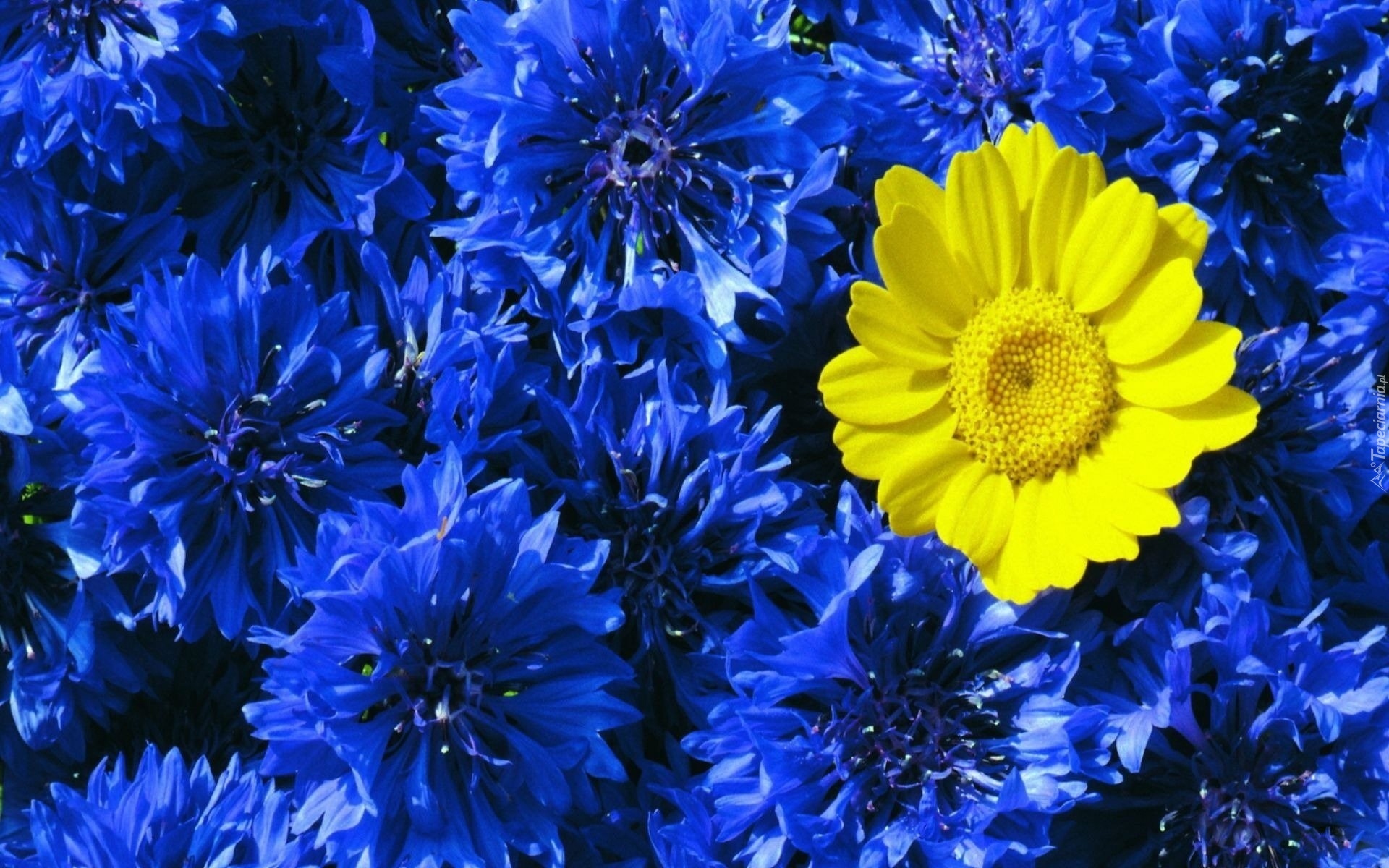 Edytor tapety: Żółty, Kwiat, Na, Tle, Niebieskich