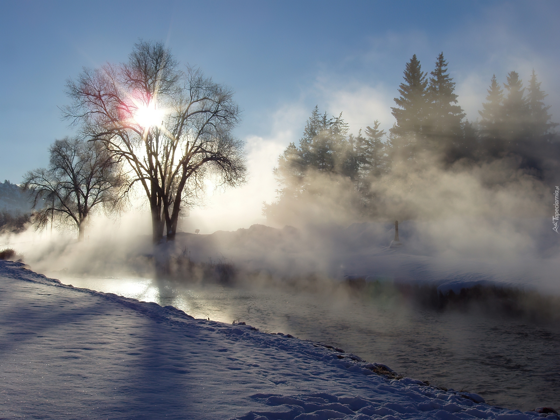 Edytor tapety: Zima, Śnieg, Wschód, Słońca