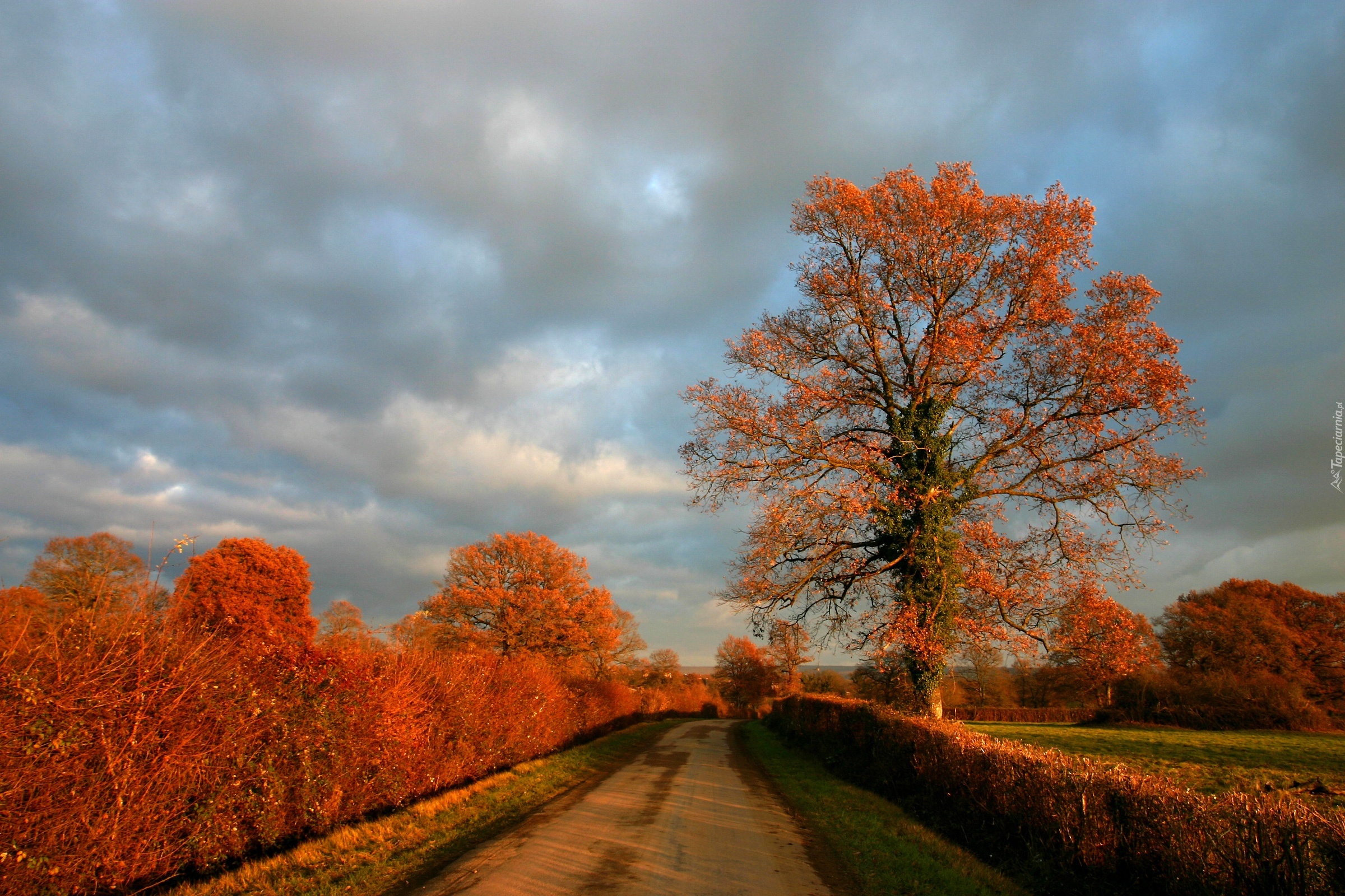 Edytor tapety: Droga, Jesień, Drzewa