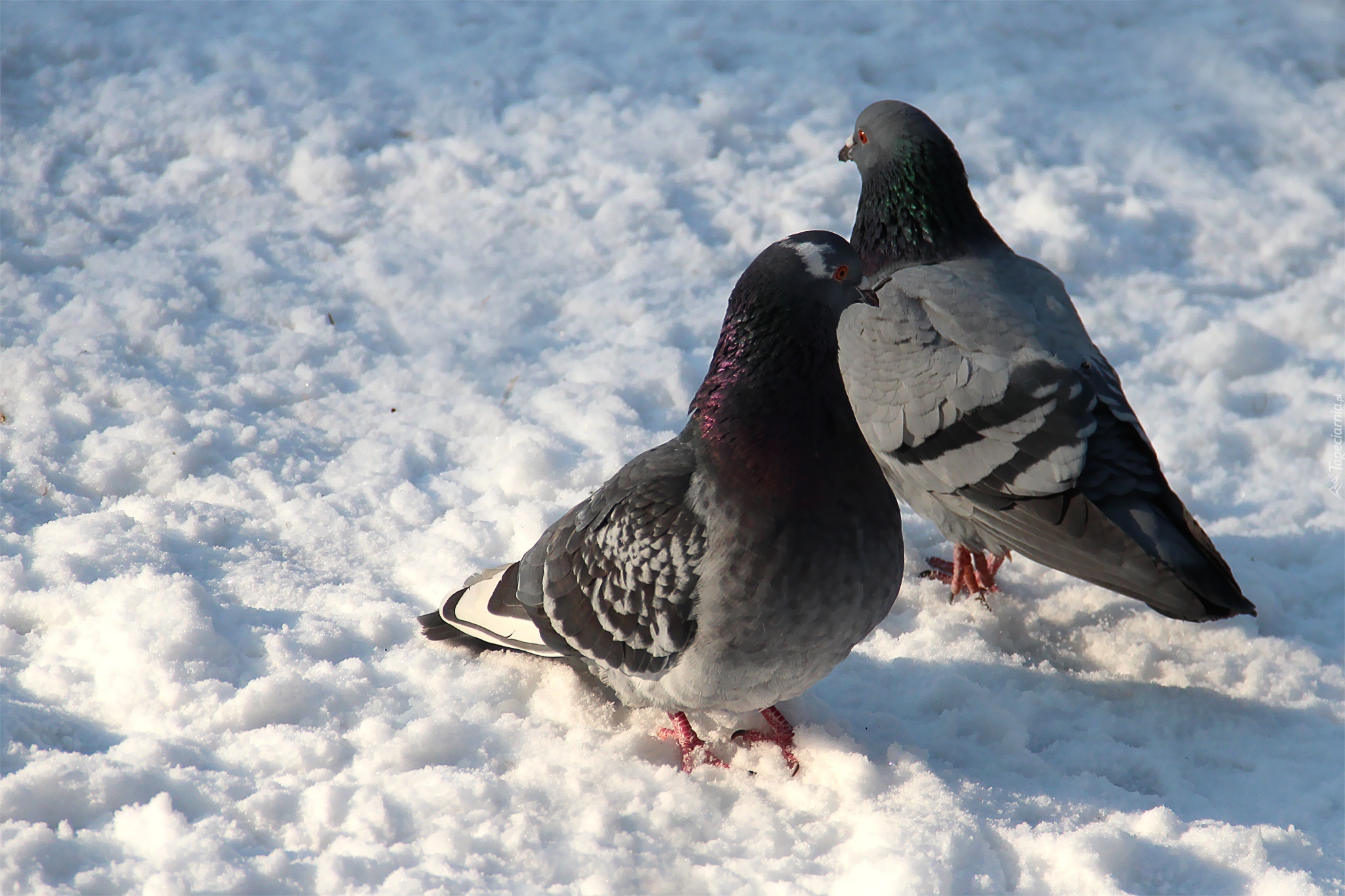 Edytor tapety: Dwa, Gołębie, Na, Śniegu