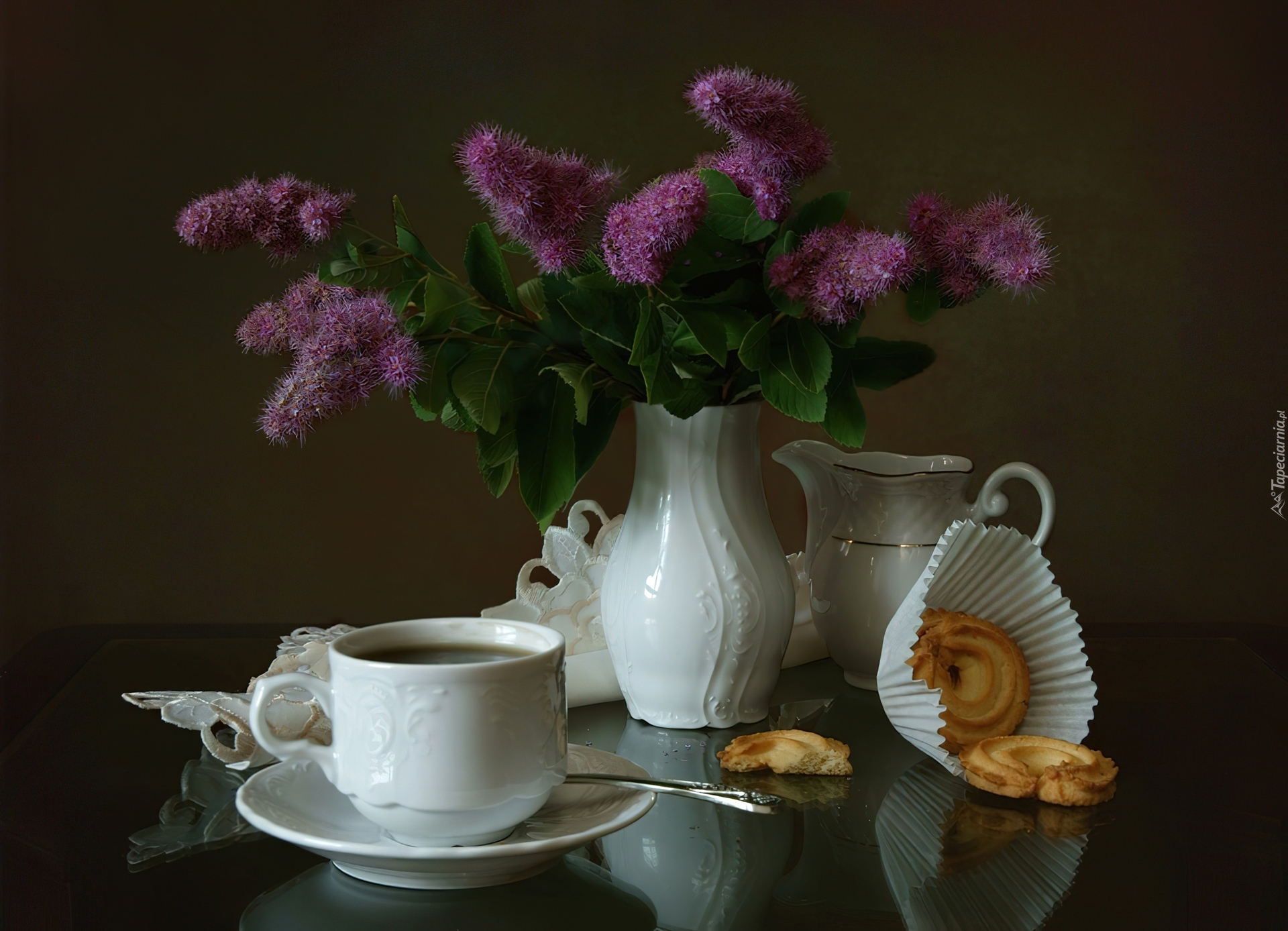 Edytor tapety: Biała, Porcelana, Fioletowe, Kwiaty