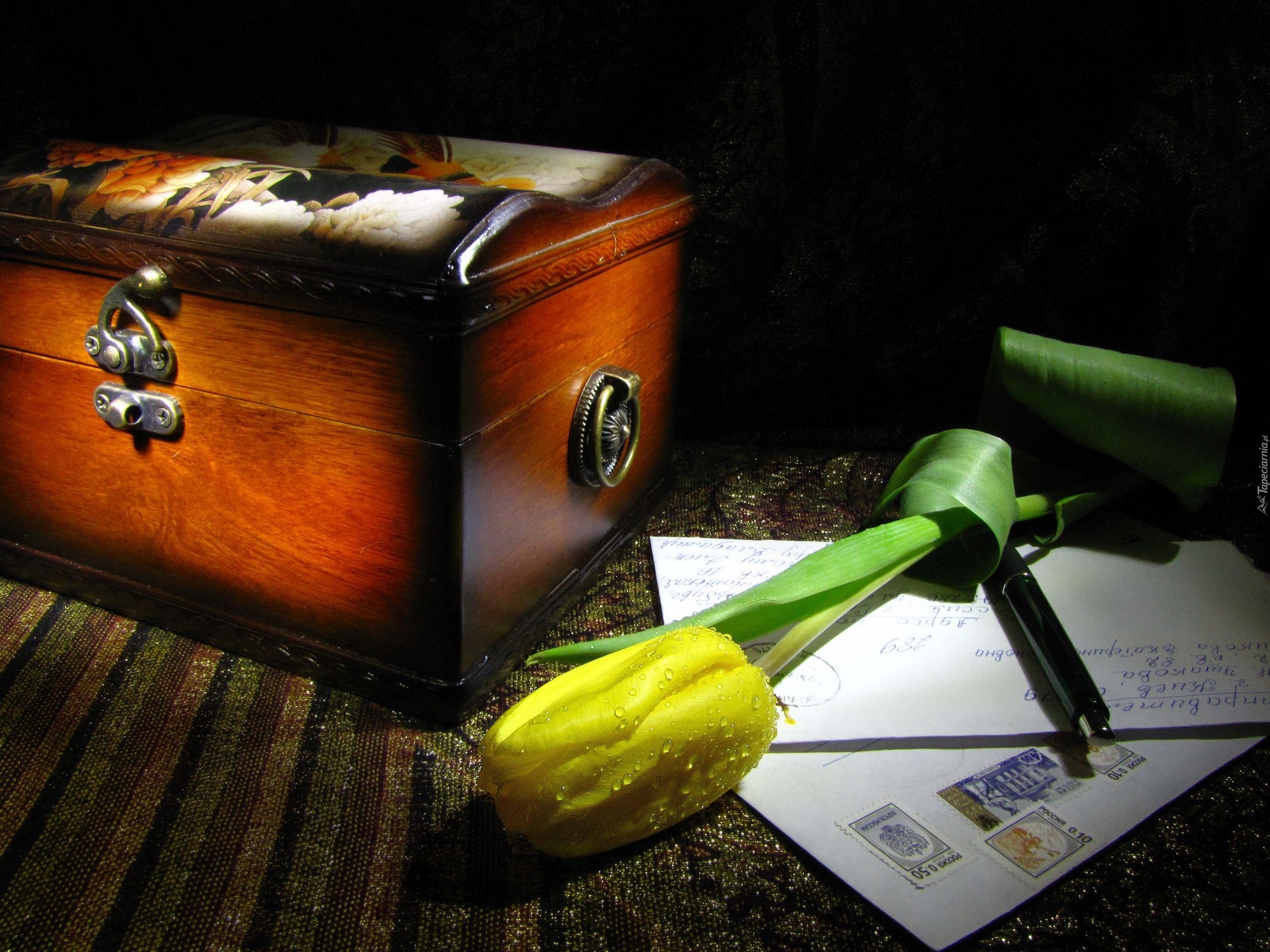 Edytor tapety: Żółty, Tulipan, Kuferek, Listy
