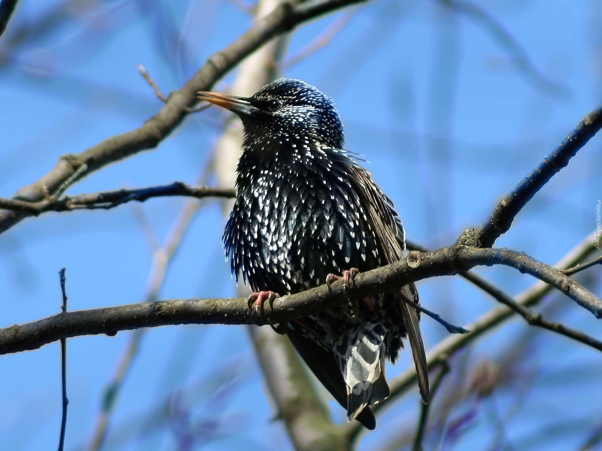 Edytor tapety: Ptaszek, Szpak, Gałązki